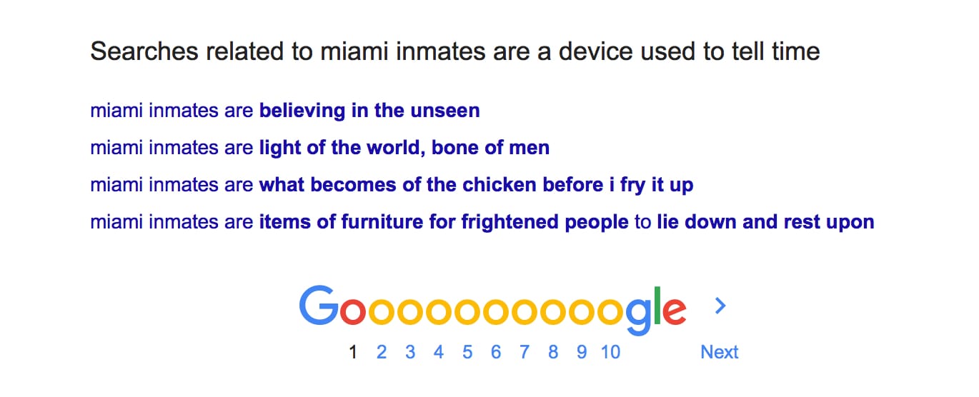 A massive search activity in South Florida has created search trends, effectively publishing poems by Miami inmates within the suggestions of Google search.