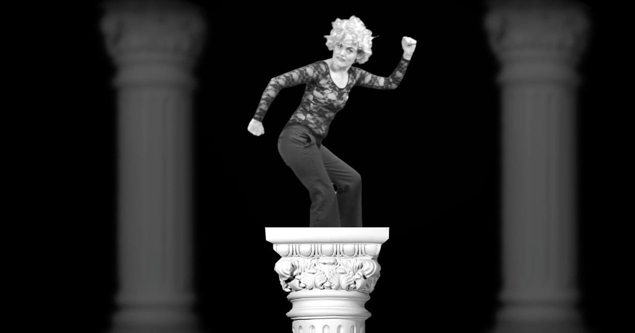 Similarly, Dynasty Handbag, aka Jibz Cameron, plays with the absurd alter-ego, creating a buffer between real-life and fictional comedic performance. Dynasty is so over-the-top — we are fascinated like we are with a John Waters film — so we’ll go with her anywhere. Her performance work is actually funny — not just poking fun at the art world — and at times she ends up on bills and slates that include comedians. In her recent music video “Vague,” a spoof on Madonna’s “Vogue,” Dynasty dances and wanders amidst a variety of odd backdrops while also pulling off signature vogueing moves. Except for her, everything is vague — she’s not sure where she is or what’s going on, and most of what she says is almost incomprehensible. At one point, she sings about a vague situation she may have been in, where she couldn’t tell if it was a business lunch or a date. Produced by the comedy network JASH, Dynasty’s work fits into both the art and comedy worlds, creating something else entirely. Her work embraces a kind of middle space, a queering of traditional boundaries — expressing a kind of nihilism where maybe everything matters, maybe nothing matters, but either way, LOL.