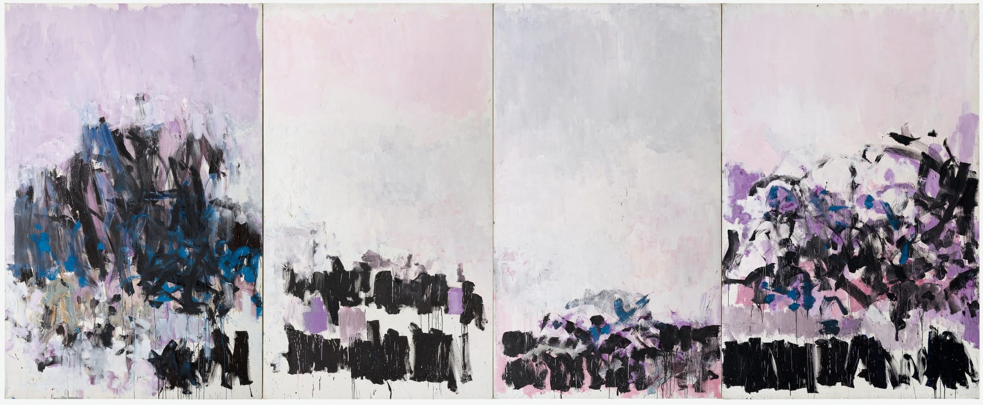 Joan Mitchell, "La Vie en Rose" (1979), oil on canvas, overall dimensions 9 feet 2 1/2 inches × 22 feet 3 15/16 inches × 4 inches, lent by the Metropolitan Museum of Art (© Estate of Joan Mitchell)