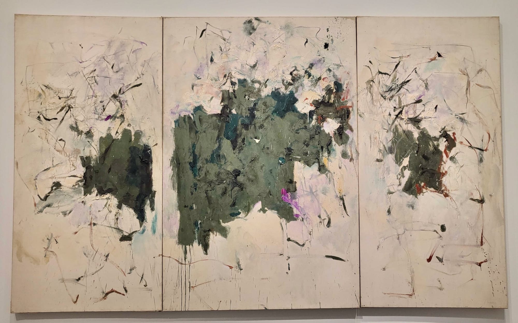 Joan Mitchell, “Girolata Triptych” (1963) (photo Seph Rodney/Hyperallergic)