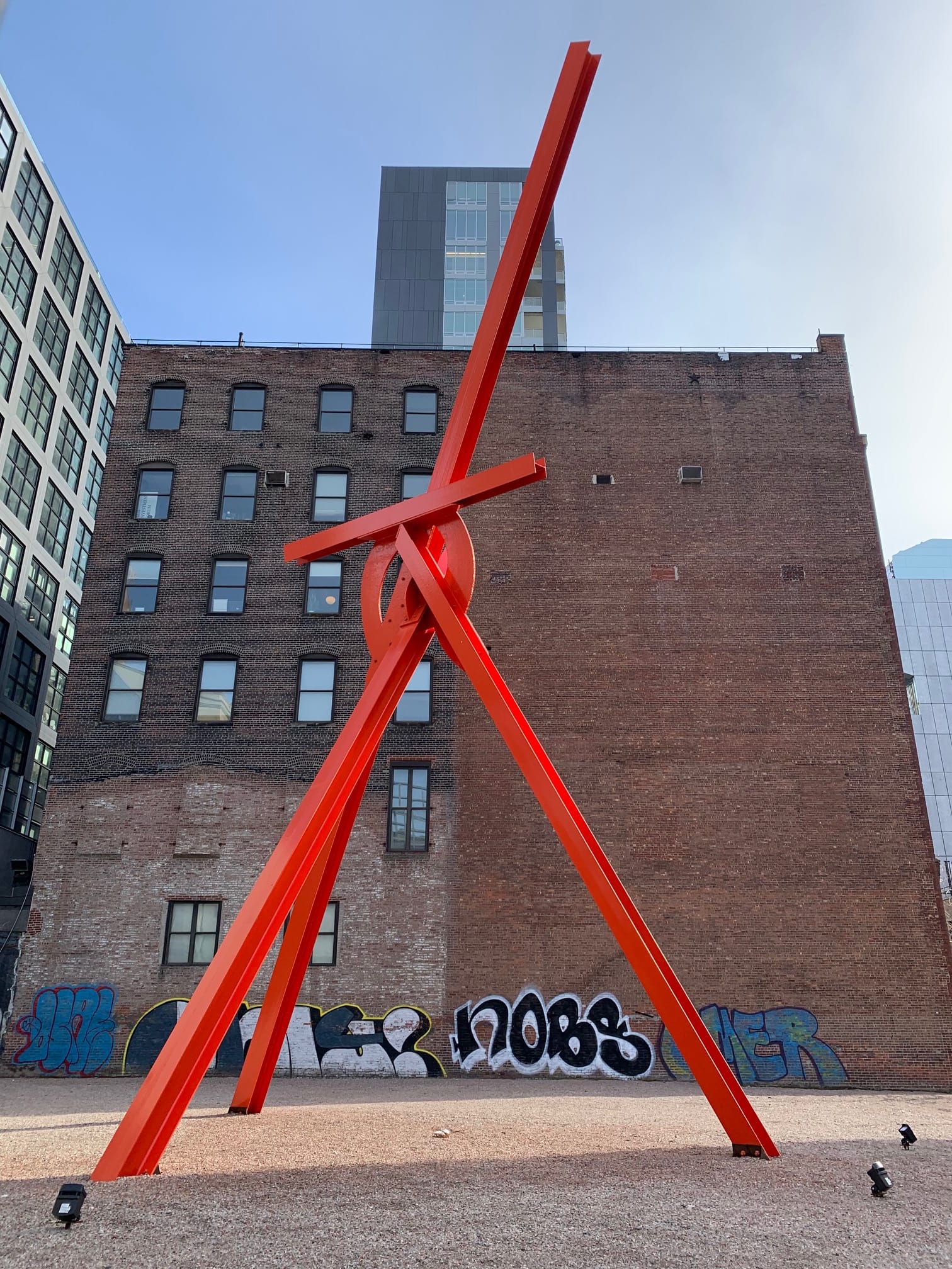Perhaps, by putting his work outside, di Suvero inadvertently put this “very different relationship” into relief. While art might have an intended meaning or framework around it for the viewer to engage with, art is also a mirror — it reflects the experience of the viewer, who will often project onto the art. At its best, public art does a service to a community, it can inspire a new conversation, or be a space in which people are moved to create call to action. There is less control over how people will interact with public art than with work installed in a museum or gallery. There is a freeness there, an ability to ambulate and move around it and breathe with the work, and that is what continues its relevance.