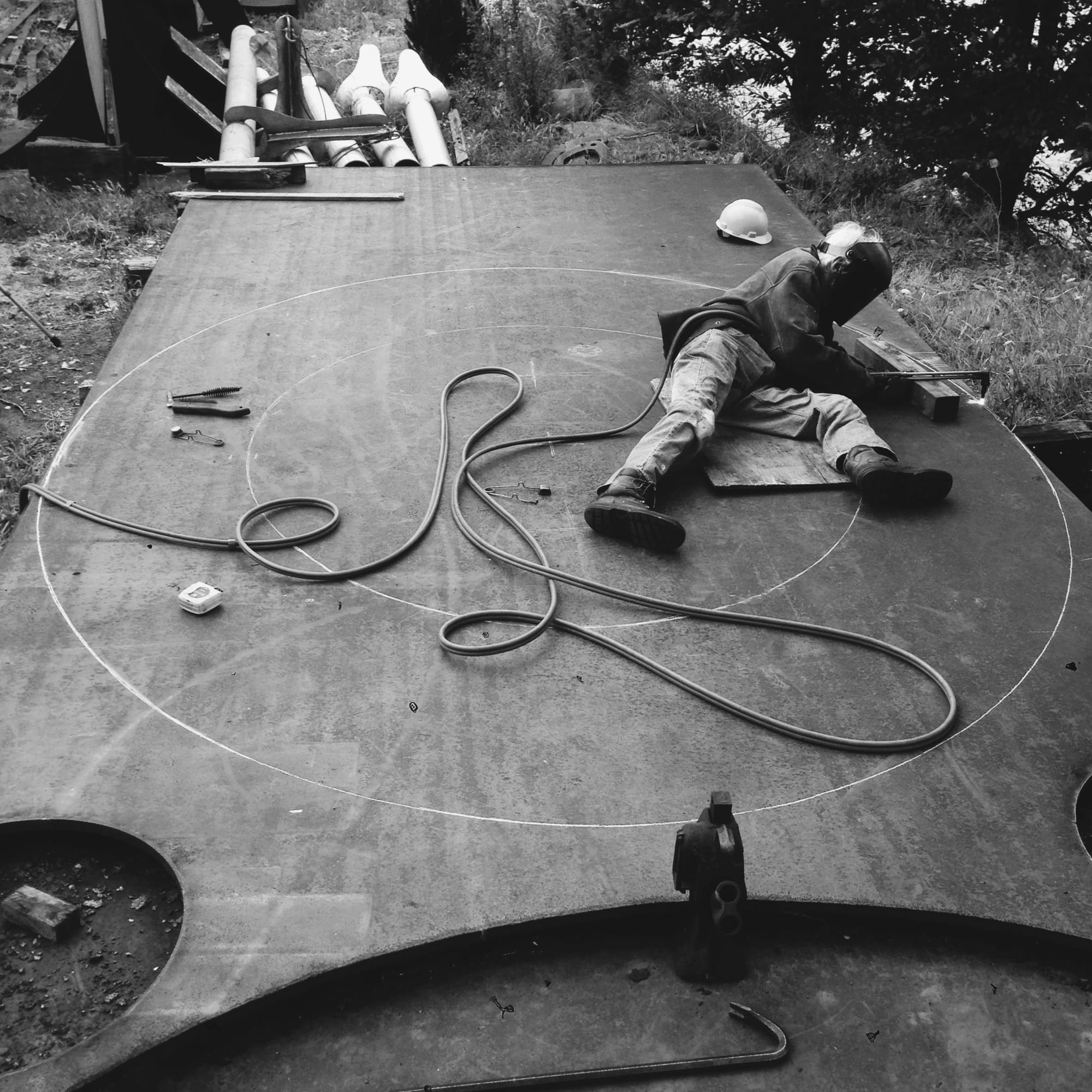 “After 60 years I’m still doing it with my hands. I cut the steel. I weld it. I put it together,” said Mark di Suvero over the phone. Speaking of working in steel for the past six decades, he states, “You have to go with it — when you’re working. It’s like the grain of wood. It goes one way; if you try to plane it in the wrong way it doesn’t work.”
