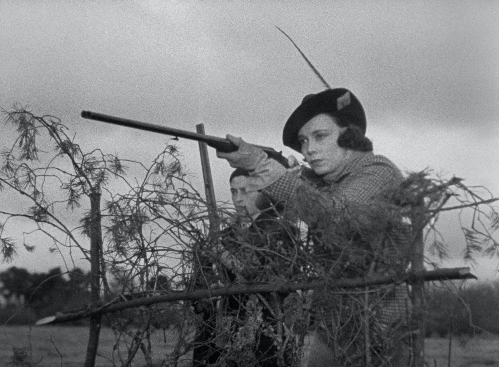 Recently restored to 4k digital, Renoir’s masterpiece has possibly never looked better, while adhering to the director’s original vision as much as possible. The film’s visual details and multiple planes of action are crisp and clear: the perspiration on André’s brow when he lands his record-setting flight, the circles under Christine’s eyes as she hears him on the radio, the paisley pattern on the scarf with which Robert nervously blots his face, the leopard spots on Geneviève’s fur chapeau. But the lens also turns toward the kitchen staff folding tablecloths in the back of the shot, to the servants beating trees with sticks to rouse the rabbits the rich will hunt, and to the polka-dotted tie of Marceau (Julien Carette), an indigent poacher whose animal traps are as quick as his hands on Lisette.
