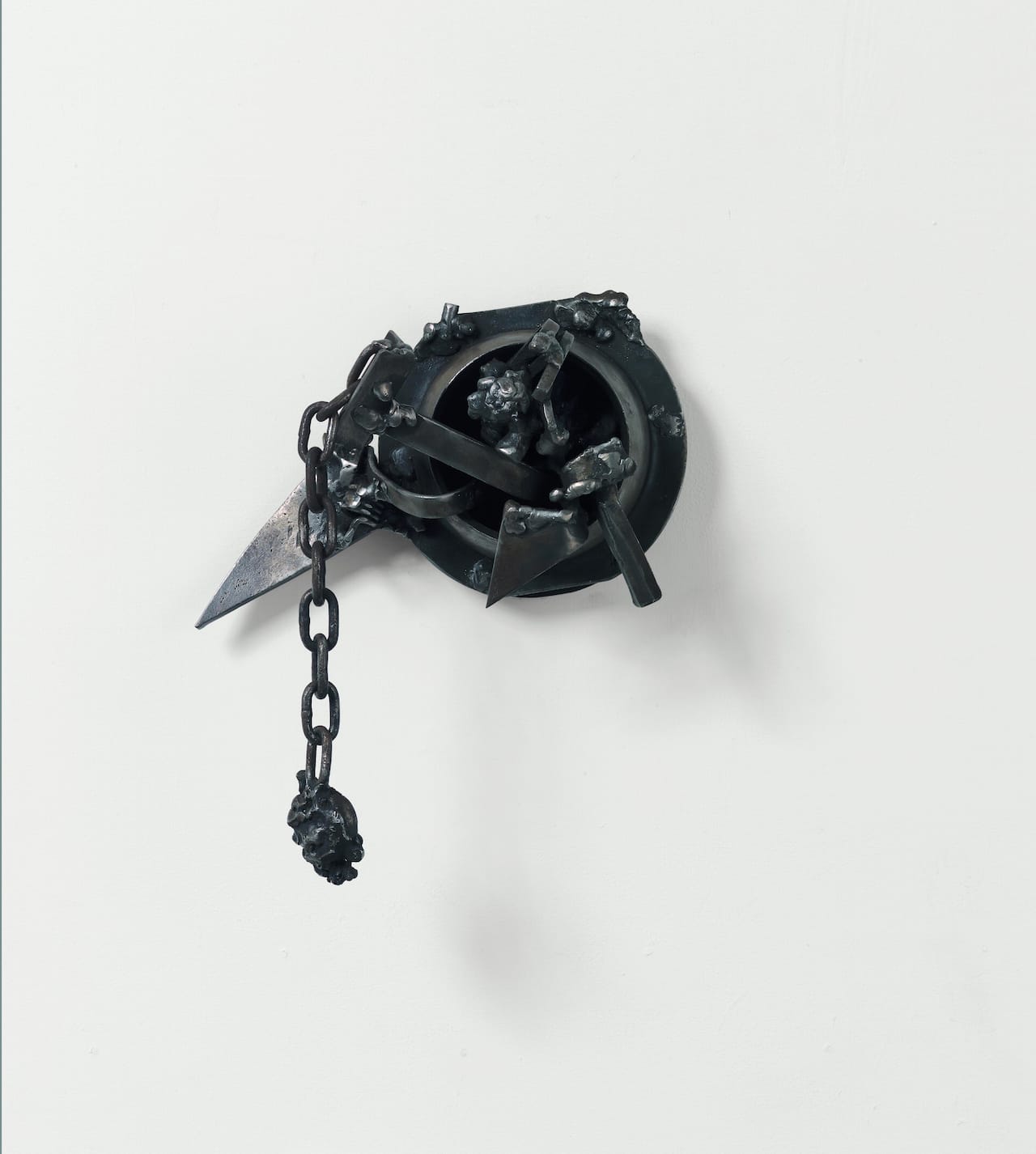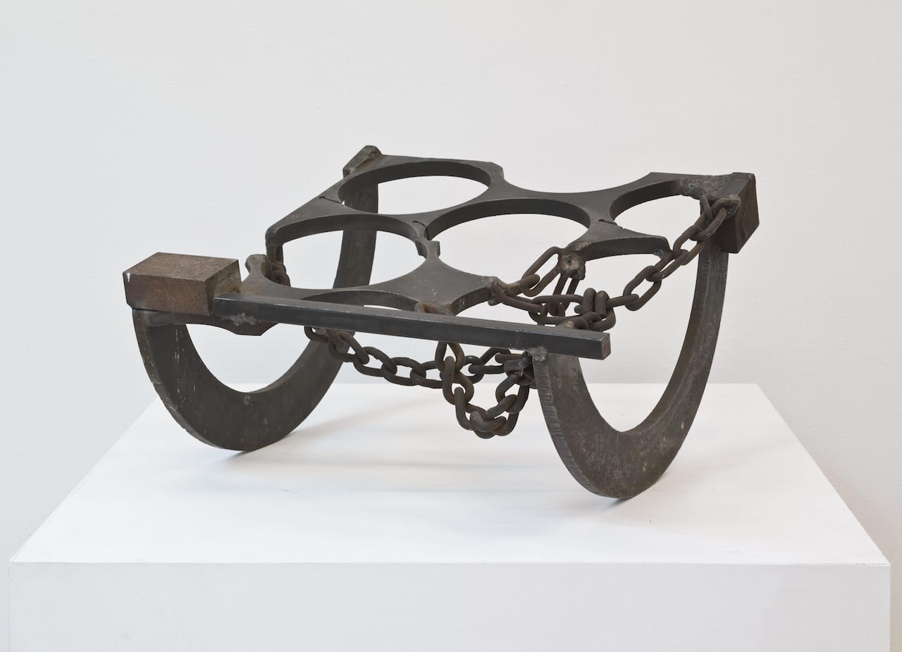 Born in Houston, Texas, in 1937, Edwards grew into adulthood in an America where segregation was still the law in many states. We should not confuse Smith’s use of tongs or a printer’s tray with Edwards’ use of a chain or padlock. These elements are derived from America’s troubled and troubling history; Edwards calls attention to this history but never becomes didactic about it, which is what gives his work an undeniable power. More than half-century later, the early “Lynch Fragments” have lost none of their power. In fact, they have gained in resonance over time because they point to the physical pain and constraints that humans have had to endure throughout history. The power of Edwards’ sculpture is consummately sensual, not in the erotic sense, but one that suggests deep, wrenching pain.