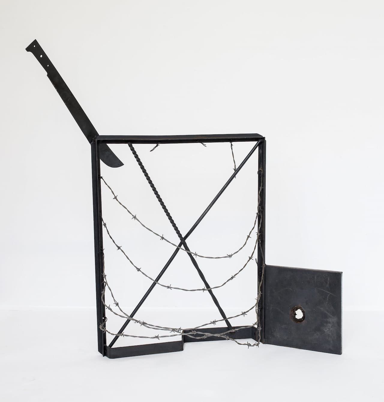 NEW BRUNSWICK, NJ — In 1963, while living in Los Angeles, Melvin Edwards welded “Some Bright Morning” out of different pieces of steel scrap metal, including a heavy chain and a dagger-like fragment extending from a circular, collar-like form. By using scrap metal, Edwards took a different path from his peers, who were making assemblages out of junk. Although he might not have been aware of it at the time, Edwards was both aligning himself with the use of welding and iron that began with Julio Gonzalez and Pablo Picasso, and continued in the work of David Smith and Anthony Caro. However, it seems to me that once this lineage became apparent, he recognized his desire to open it to a history that included blacksmithing, slavery, and the physical pain inflicted by the use of metal instruments.