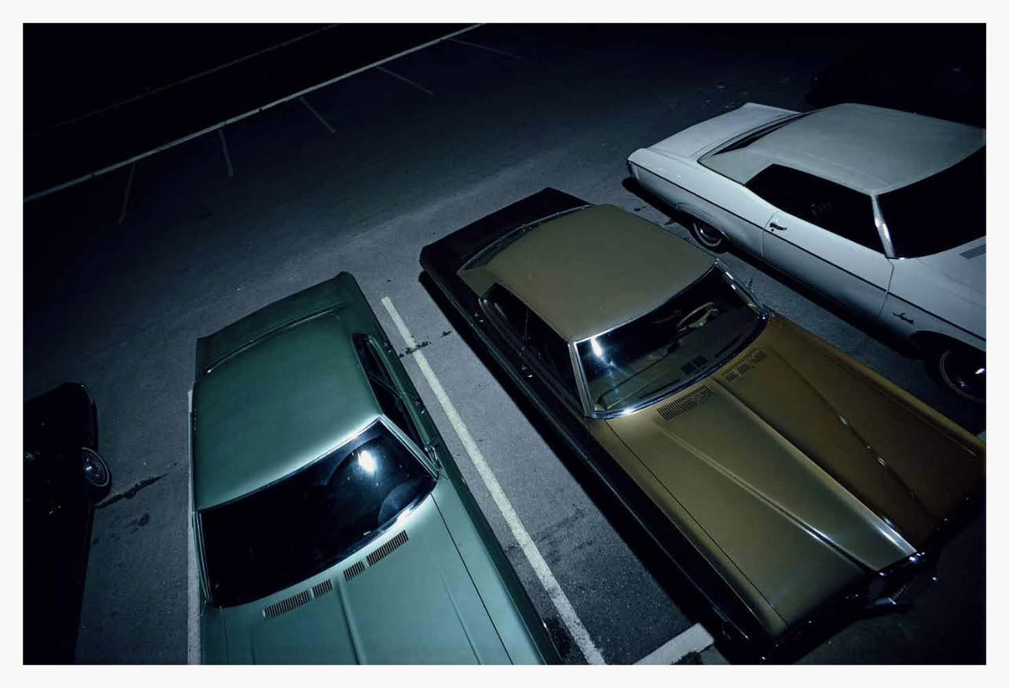 Full of cars, gas stations, convenience stores, and highways, the photos in The Outlands carry clear signs of an American road trip. Here Eggleston deals with distance but in unexpected ways: Rather than focusing on speed and motion, the artist hones in on the moments when his journey slows down and stops. His carefully composed pictures are often shot from parking lots, hotel rooms, sidewalks, and even car repair shops, interstitial places where the traveler pauses and immerses themselves, however briefly, in an unfamiliar environment.