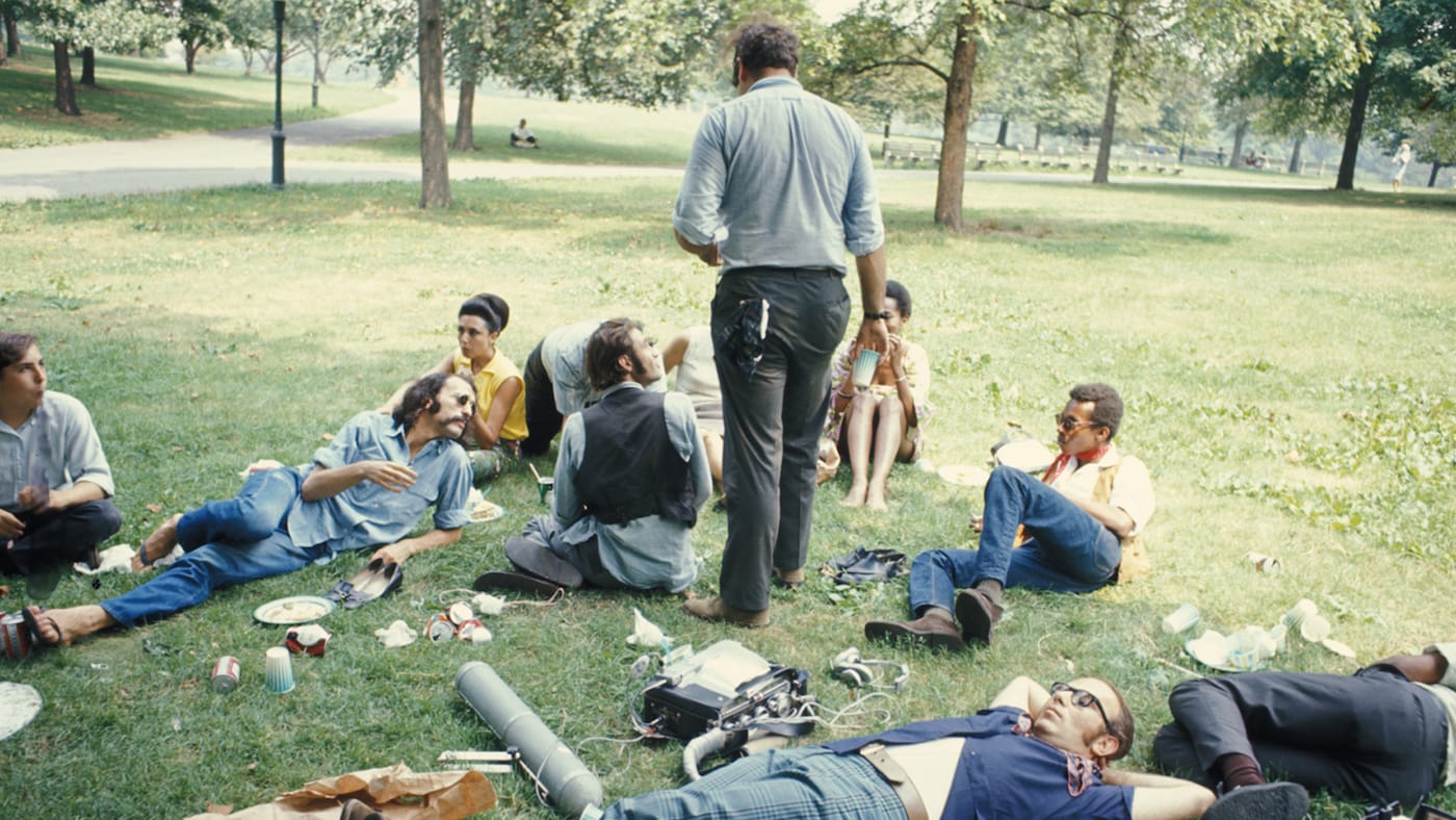 The film tracks the production of a short film in Central Park, for which the director (“played” by Greaves) has assembled a crew (“played” by the crew of the overall documentary) and hired several pairs of actors to try the roles of a discontented couple, who broach sexuality, abortion, and use “cunt” as an anatomical term. When the crew confronts Greaves about his poorly written script, he evades making changes and avoids directing the actors. As filming continues with no apparent progress, the crew develops suspicions that Greaves doesn’t have a plan at all — suspicions that they discuss seemingly in private, but which they decide to record on film without explaining why. They openly wonder about what Greaves might think when he watches their conspiratorial meeting. “Rumors of unrest and revolution in the crew should develop, should lead to encounters with the director,” Greaves wrote in his production notes to himself.
