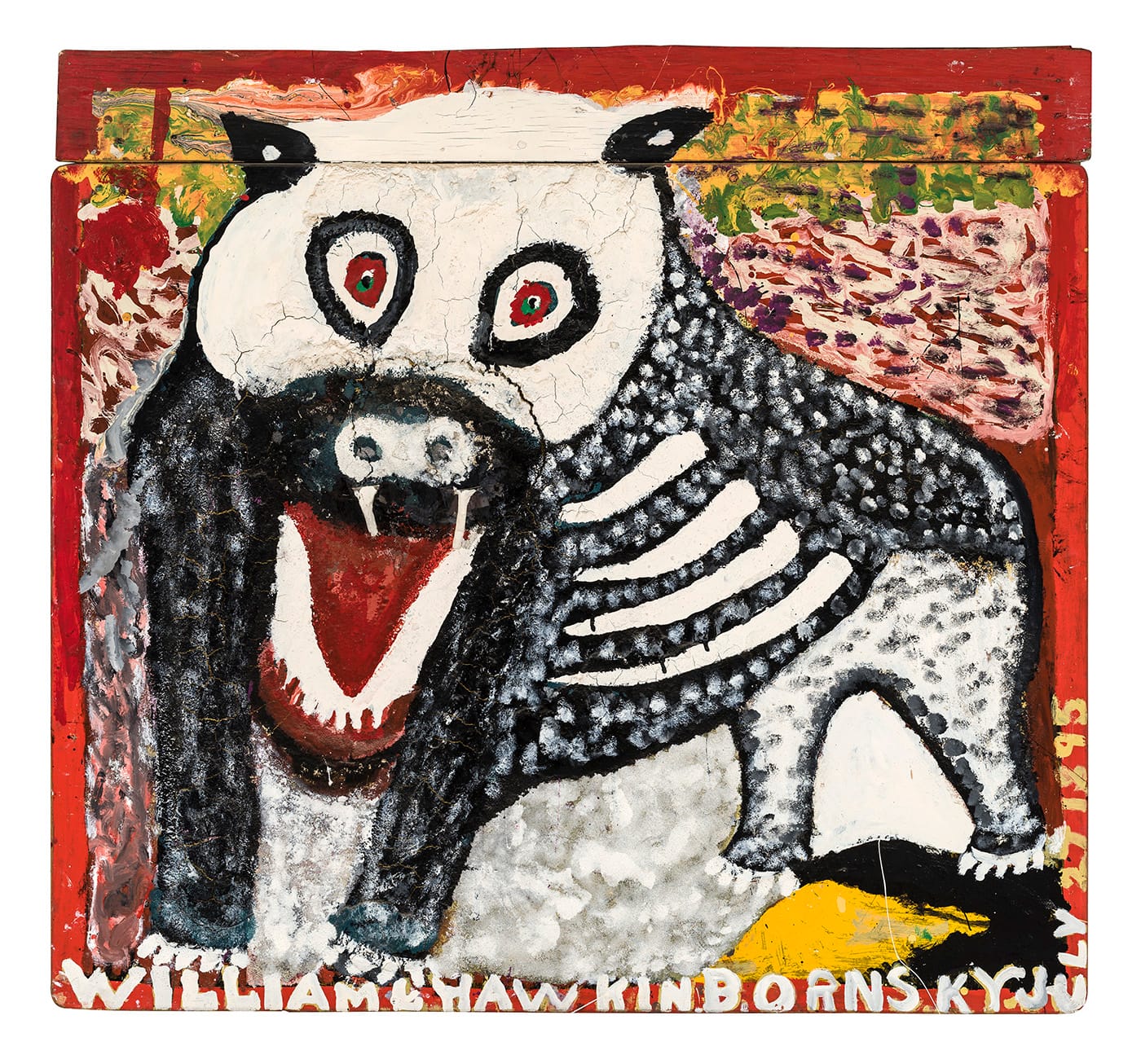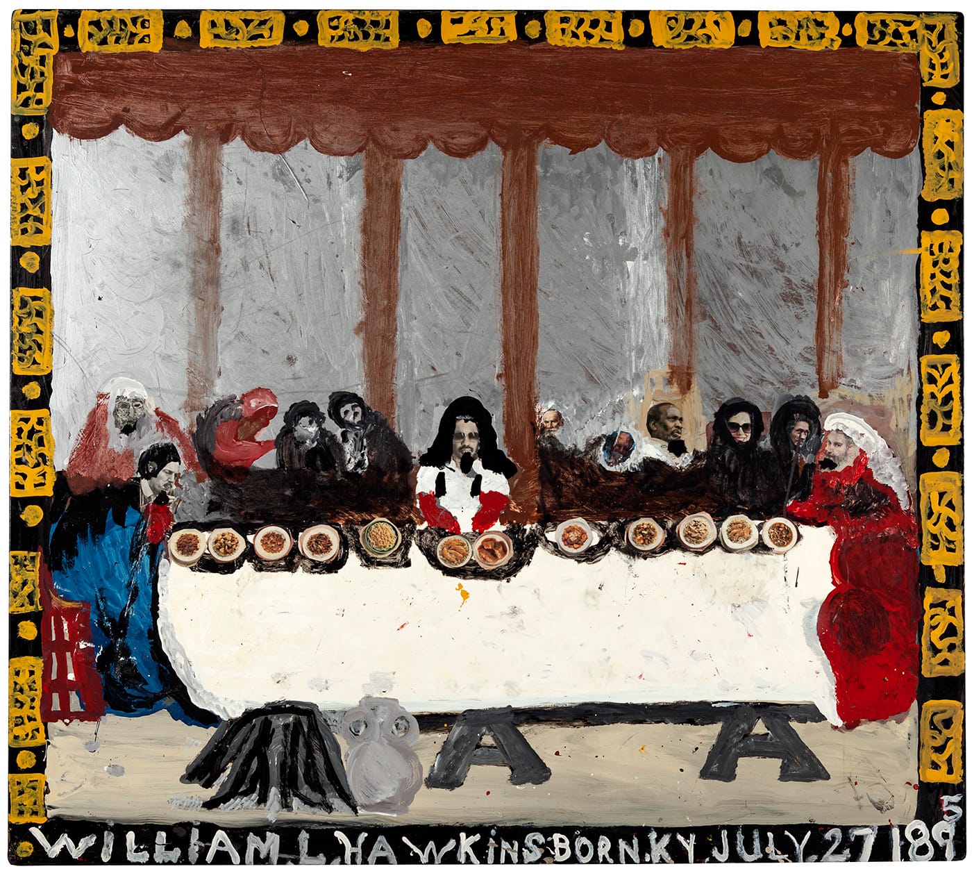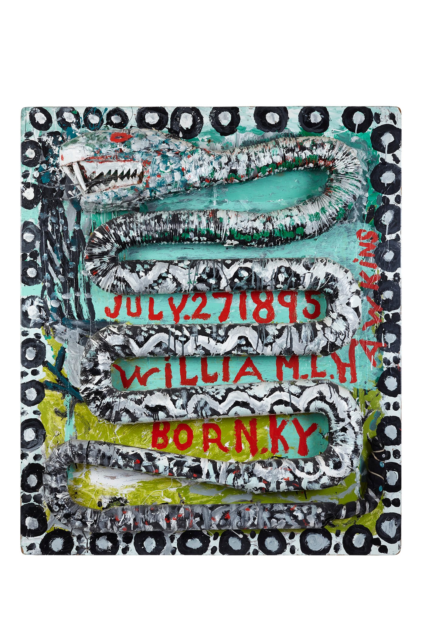 The accretion of some 60-plus pieces of 2D and rare 3D work are all the more impressive when one considers that Hawkins was not discovered or embraced by the art world until he was in his 80s. Most of his extant work comes from the single decade between his public debut, when he took first prize at the 1982 Ohio State Fair, and his death in 1990 — but during his years in the limelight, Hawkins was so wildly popular and successful in selling his work, it’s entirely possible that the artist himself never got to see this many of his paintings in one place.
