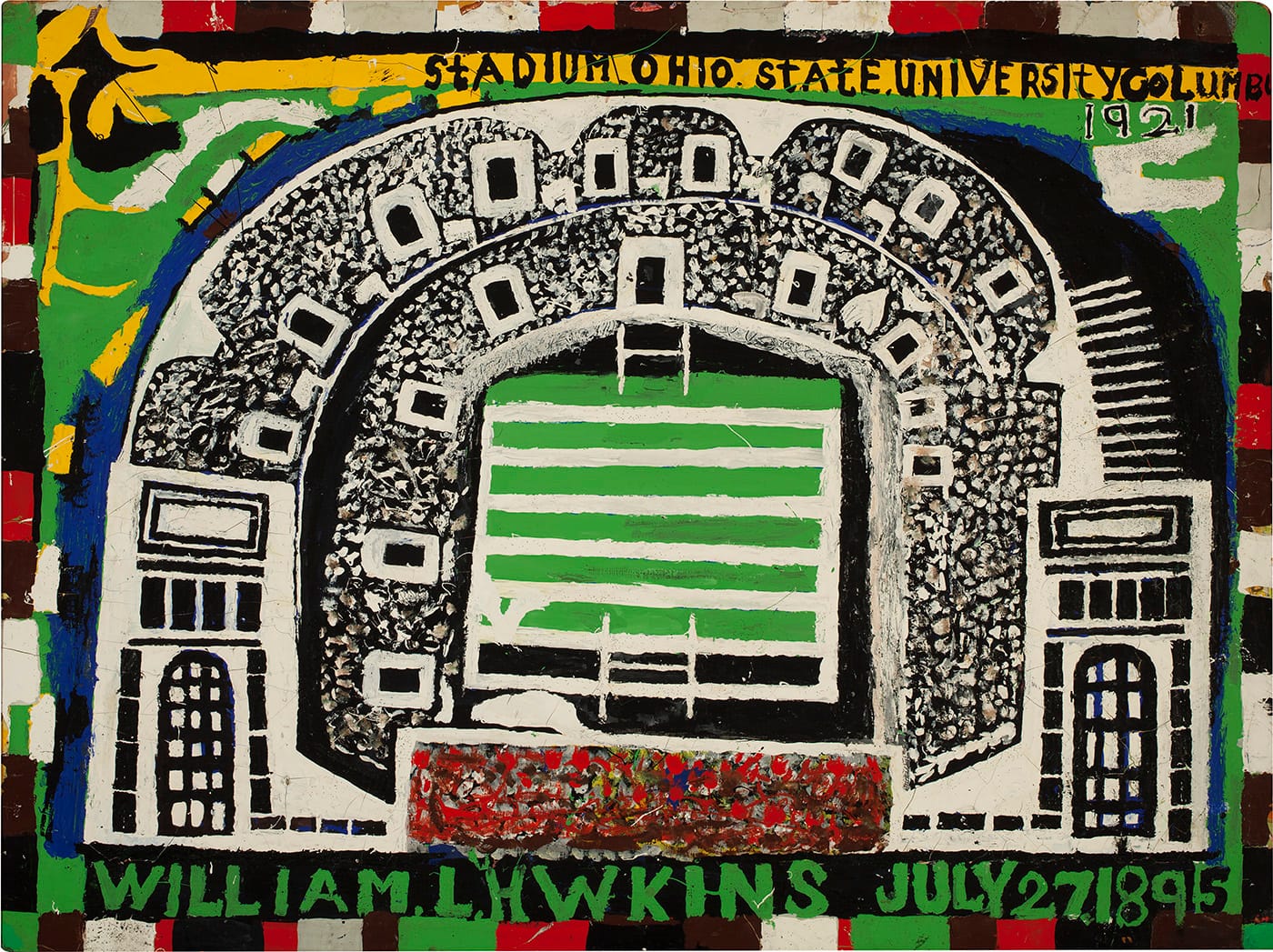 COLUMBUS, Ohio — The Columbus Museum of Art (CMA) has a real knack for presenting artists who not only have local connection and cache, but have gone relatively unnoticed by other major institutions. The work of William L. Hawkins has been gathered in unprecedented scope for his first major museum exhibition, William L. Hawkins: An Imaginative Geography, the joint effort of CMA and the Figge Art Museum in Davenport, Iowa. In many ways, Hawkins’s aesthetics represent the Platonic ideal of outsider art, so utterly definitive of the genre that to encounter his works feels like suddenly recalling a childhood memory. There is a sense, in looking at his bold and humorous paintings, of returning to something one has always known.