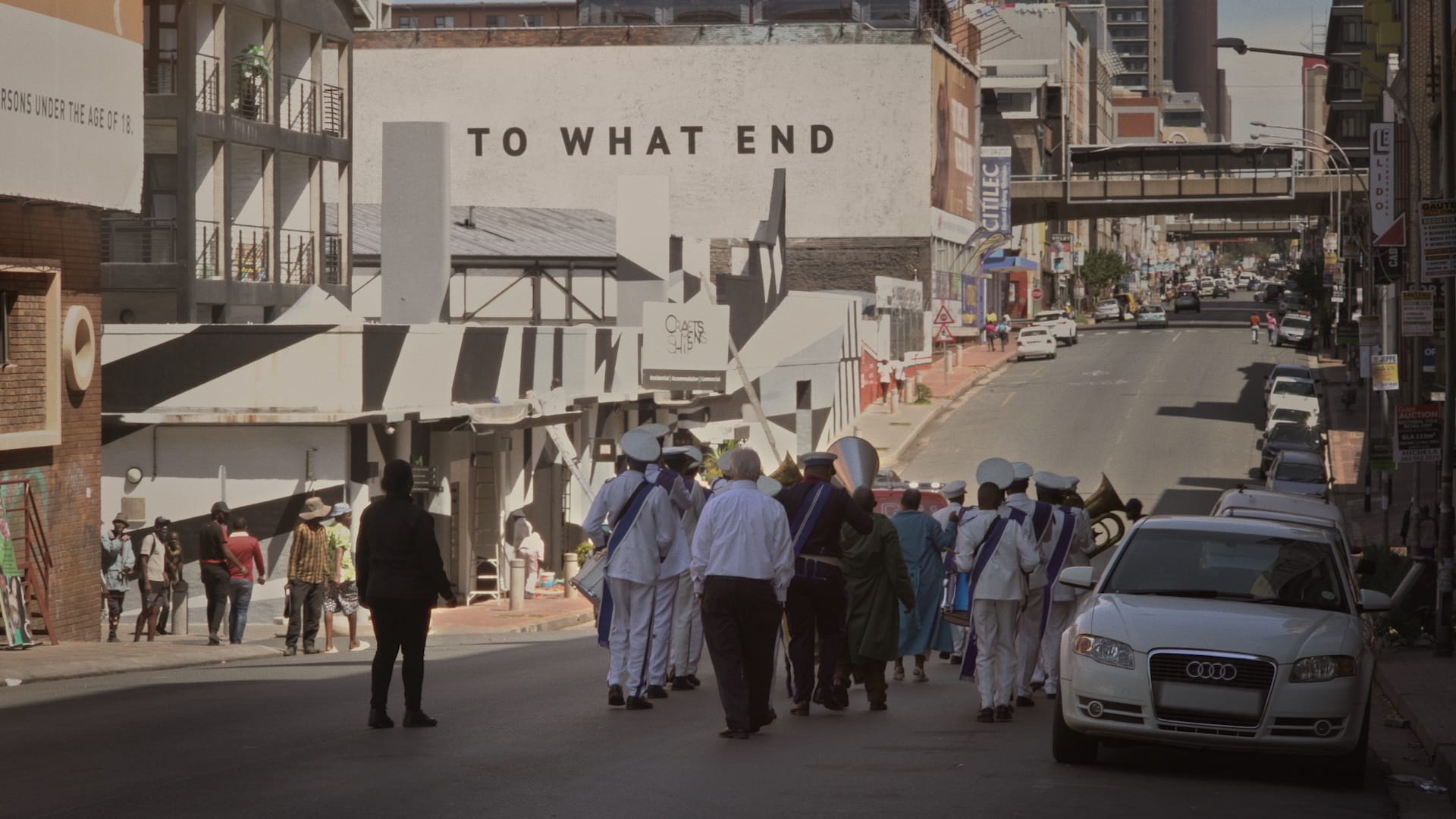It was the brass band I'd worked with before. The noise of a brass band in an interior space is spectacular. I wish we could have had that full sound. But I'd made the decision that everything would happen inside the studio and only right at the end would there be a glimpse of the world outside, a glimpse of Johannesburg.