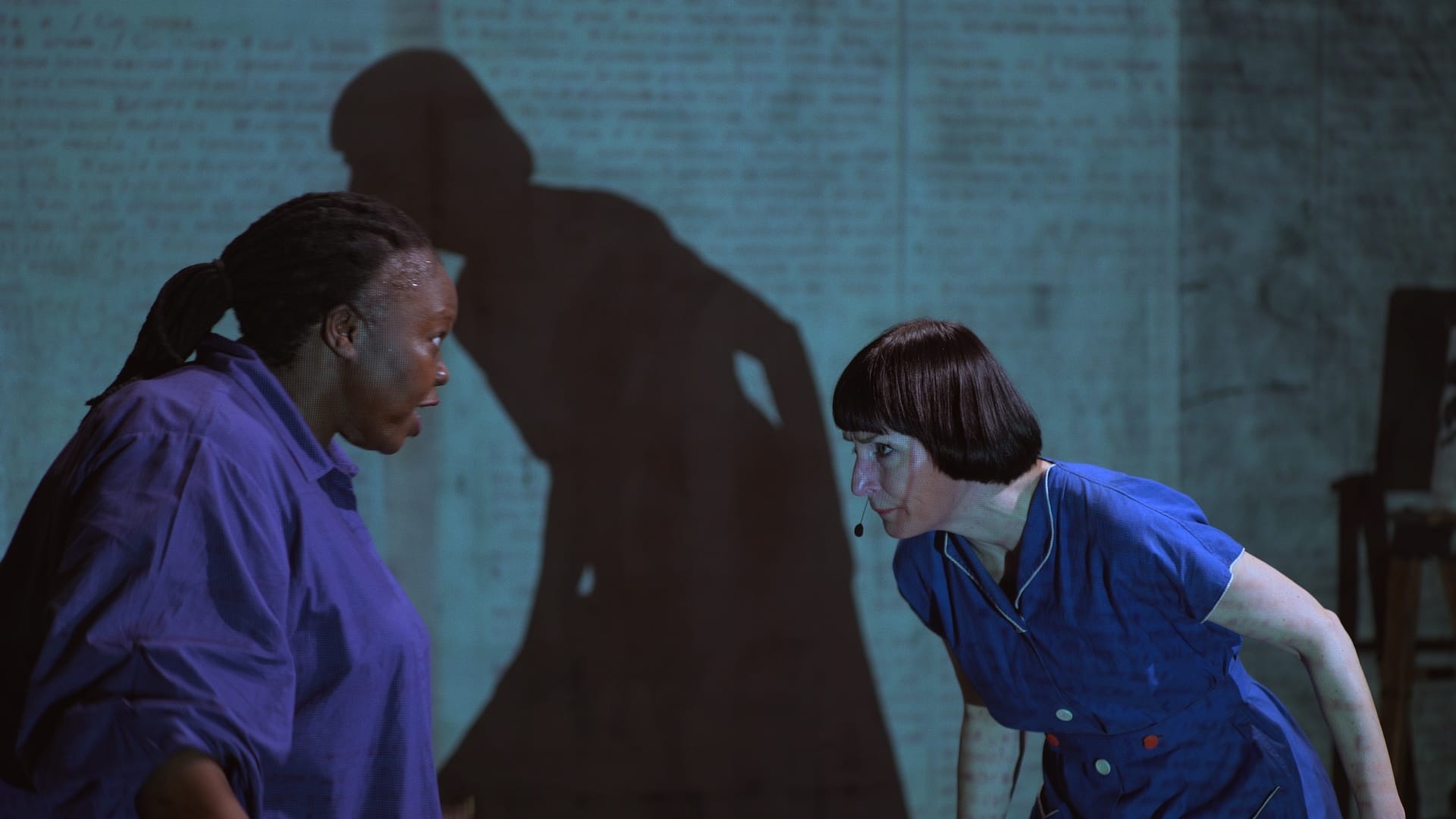 H: Throughout the series, the twin William Kentridges engage in conversation in the studio and often disagree with one another. This idea of doubling and talking to yourself — was that a COVID theme? But you say in Episode 2: “The mirror won’t help you.”