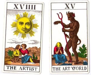 Described as a “gadfly in the art establishment” by the New York Times, “an irresistible double-dipper and ingenious double-crosser” by the Los Angeles Times and a “stupid twerp” by the editor of Artnet Online Magazine, Powhida is a mercurial personality who has been investigating new ways to survive the volatile and Janus-faced art world. His latest path of query has led him to the dark art of sorcery.