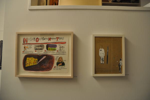 Jim Torok’s “Night Out” (2006) (left) is a humorous look at the burgeoning Williamsburg center mid-decade. On the right is Laura Parnes’s “Untitled” (1992) work from the Chain Letter series, it is only one of some half a dozen works from the 20th century on display in Williamsburg2000.