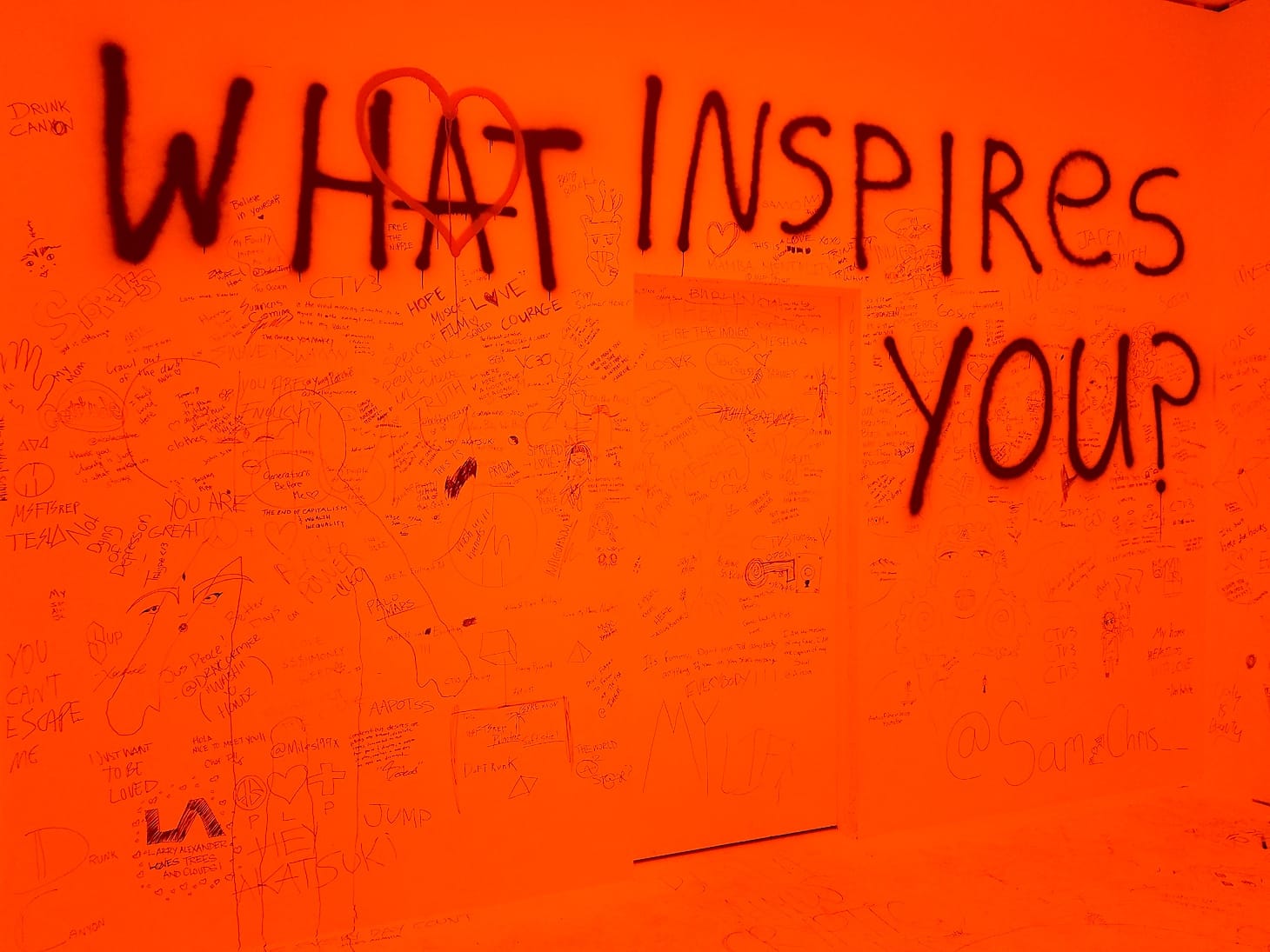 One fellow visitor, Cheyenna Wallen heard about the event through her mother, who loves Smith’s music. As Smith and Cole debated each other on the couch, Maxine, Wallen, and I traded our feverish impressions. I appreciated our spontaneous chat. It reminded me of another component from the exhibit: before entering the space, visitors passed through a white room covered in drawings, confessions, blessings. Sharpies were strewn about the floor, an invitation to unburden yourself. It felt calming to be cradled in the words of strangers and new friends, a momentary respite from the uncertainty raging outside.