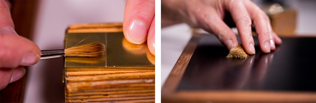 At every stage, rigour is their byword. Only the finest Kolinsky hair is used, and each strand is measured, so different lengths can be mixed in a method called taper dressing; it’s crucial for achieving the distinctive elongated tip that gives such superior control and accuracy. To obtain the celebrated ‘domed’ shape, the brushmakers then skillfully twist and roll the hairs between their fingers.