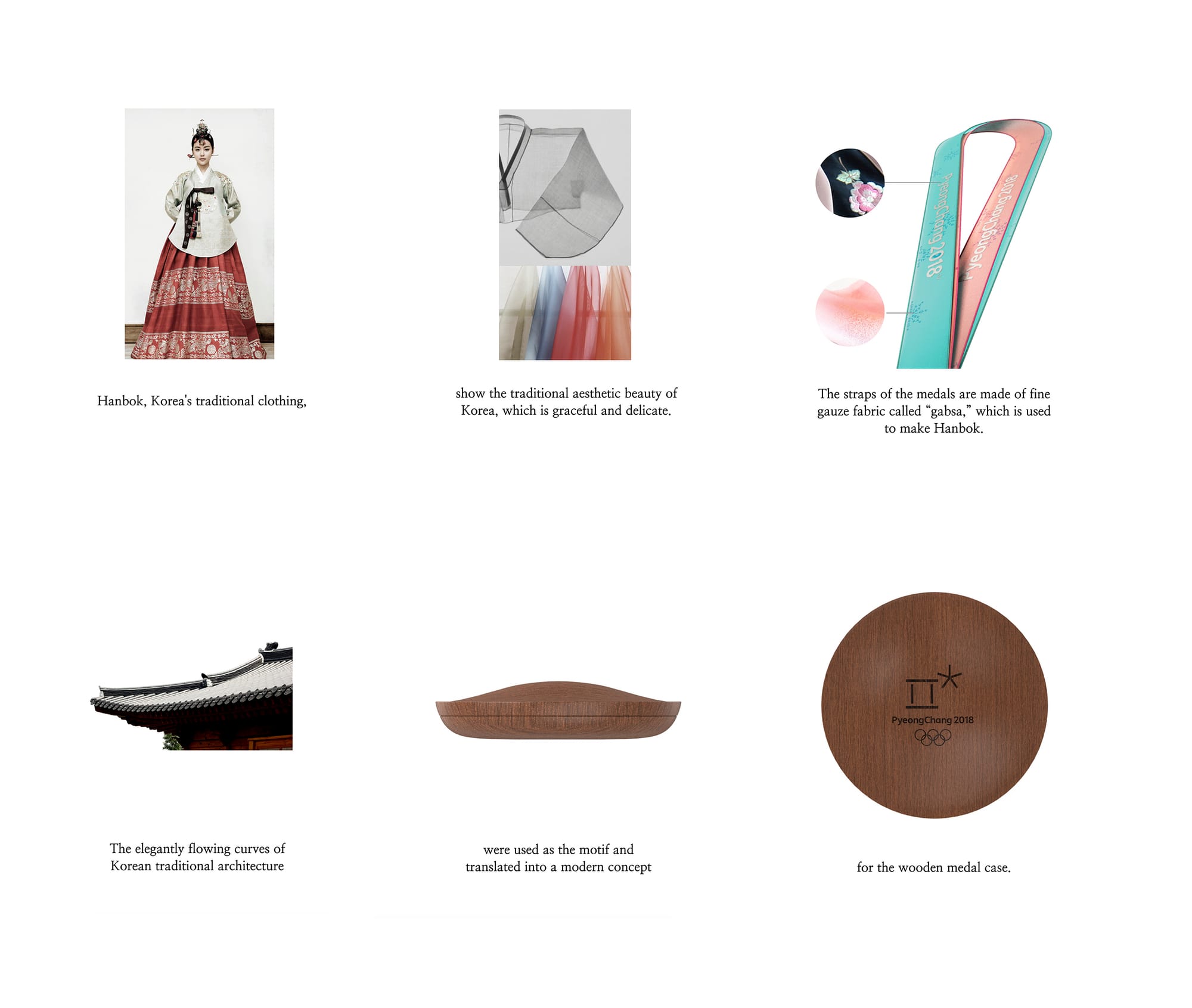 This year's Olympic medal design takes its inspiration from the Korean alphabet, as well as from traditional clothing and architecture.