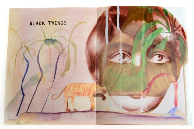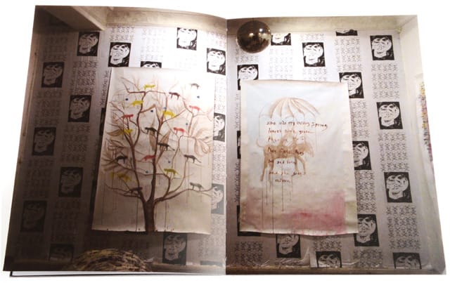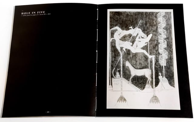 Though you might not guess it from the cover, limp penis, testes and all, Wisdom Testicles is actually an exhibition catalogue. It documents both the process and the results of a smart collaboration between three artists, Brad Downey, Matthew Murphy and Robert Stone, who met and became “antagonistic” friends while attending London’s renowned Slade School of Art in the early 2000s. Taking over a gallery space in Berlin for an evening, the three young artists stayed up all night in full view of any passerby’s, wishing to highlight both their unique working styles and the messy process of collaboration.