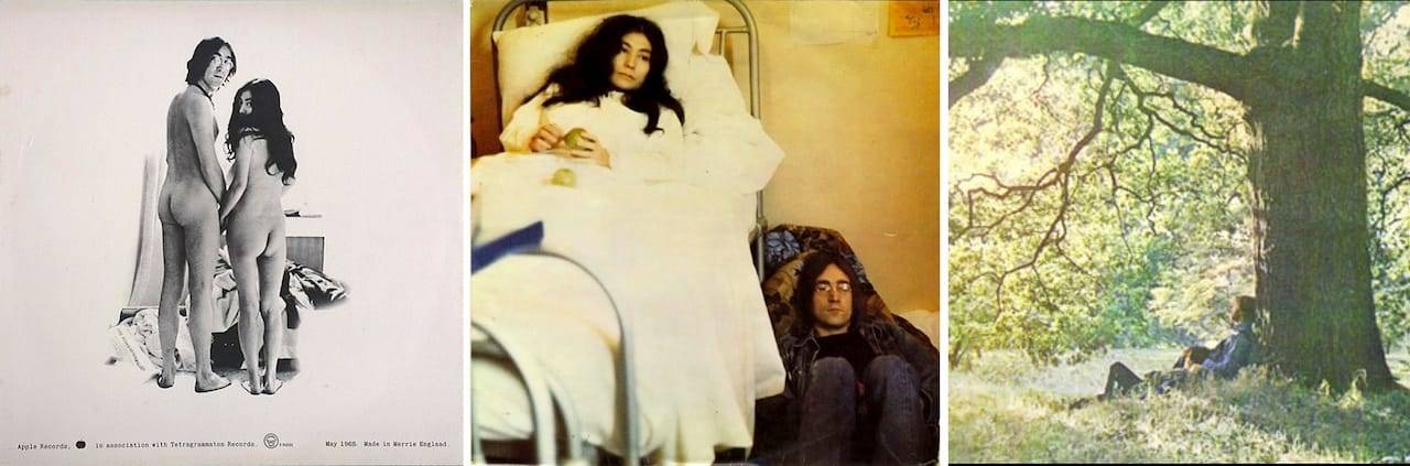 In Japan, Ono had grown up in a musical household; her father, a banker, was a pianist who played the classics and believed that serious music composition (meaning for orchestras and classical-style ensembles) was no field for a young woman. Still, that was exactly what his daughter focused on when she later studied at Sarah Lawrence College before gravitating toward Manhattan’s avant-garde scene in the late 1950s. A decade later, in London, Ono collaborated with the experimental-jazz composer and saxophonist Ornette Coleman, using her voice as an impulsive, expressionistic instrument, whose raspy, sensuous, guttural, excited sounds seamlessly integrated with the sputtering, sighing and explosions of the band. One of those performances, “AOS,” appears on the 1970 album Yoko Ono/Plastic Ono Band, which was issued simultaneously with and as a companion to Lennon’s first post-Beatles solo album, John Lennon/Plastic Ono Band.