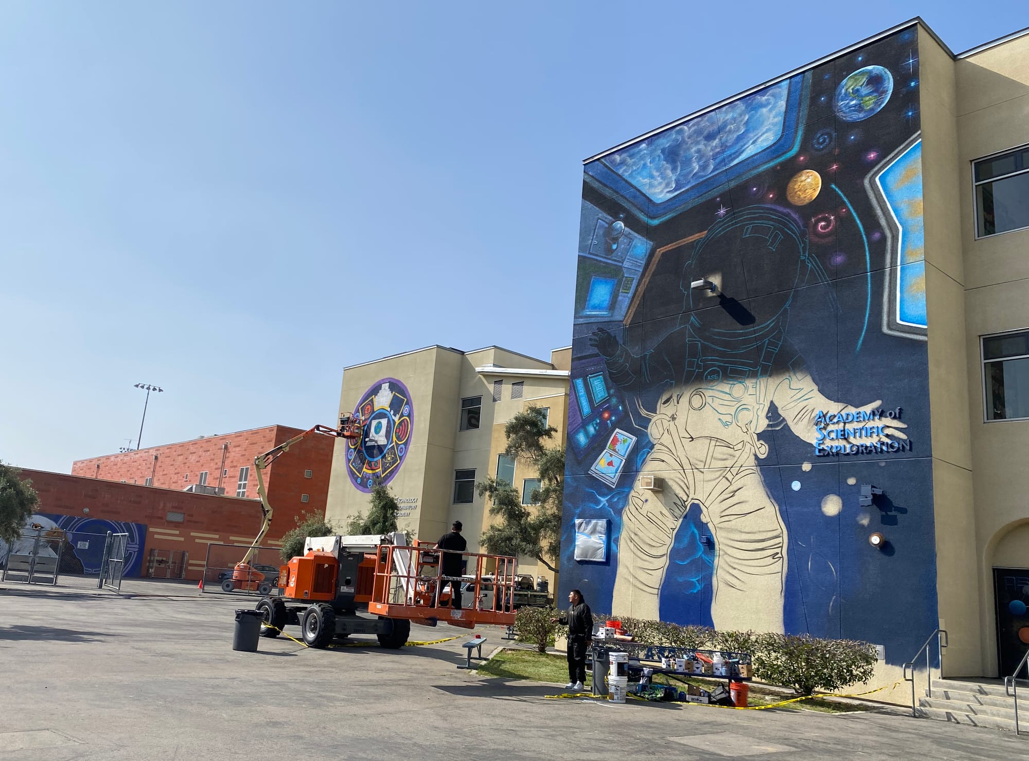 Well-known names and veteran muralists with deep ties to local communities were tapped for the project at César E. Chávez Learning Academies in San Fernando.