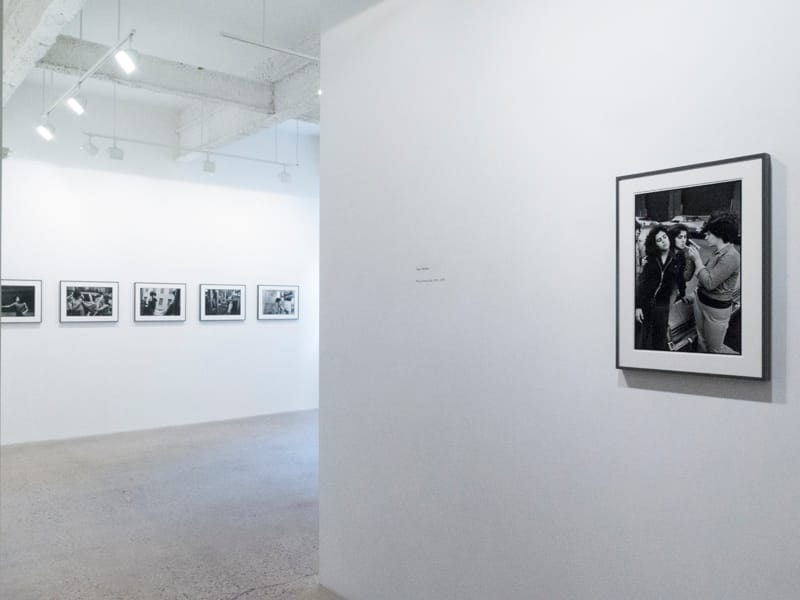 Before Susan Meiselas, as a freshly minted member of Magnum Photos, traveled to Nicaragua at the end of the 1970s to document the Sandinista revolution, she established her unflinching eye with Carnival Strippers. This series of photographs, made from 1972–1975, featured women who performed in the two-bit girlie shows at American small town carnivals and rural county fairs, as well as the audiences who frequented their performances. Meiselas captured a subculture of women for whom being ogled was intrinsic to their labor, and who forged relationships with each other built on the shared, understood premise of what it meant to be objectified for a living. But immediately following Carnival Strippers, Meiselas produced another, lesser-known series in her adopted home city of New York. The photographs that comprise Prince Street Girls (1976–1979), currently at Higher Pictures, are now being given their due.
