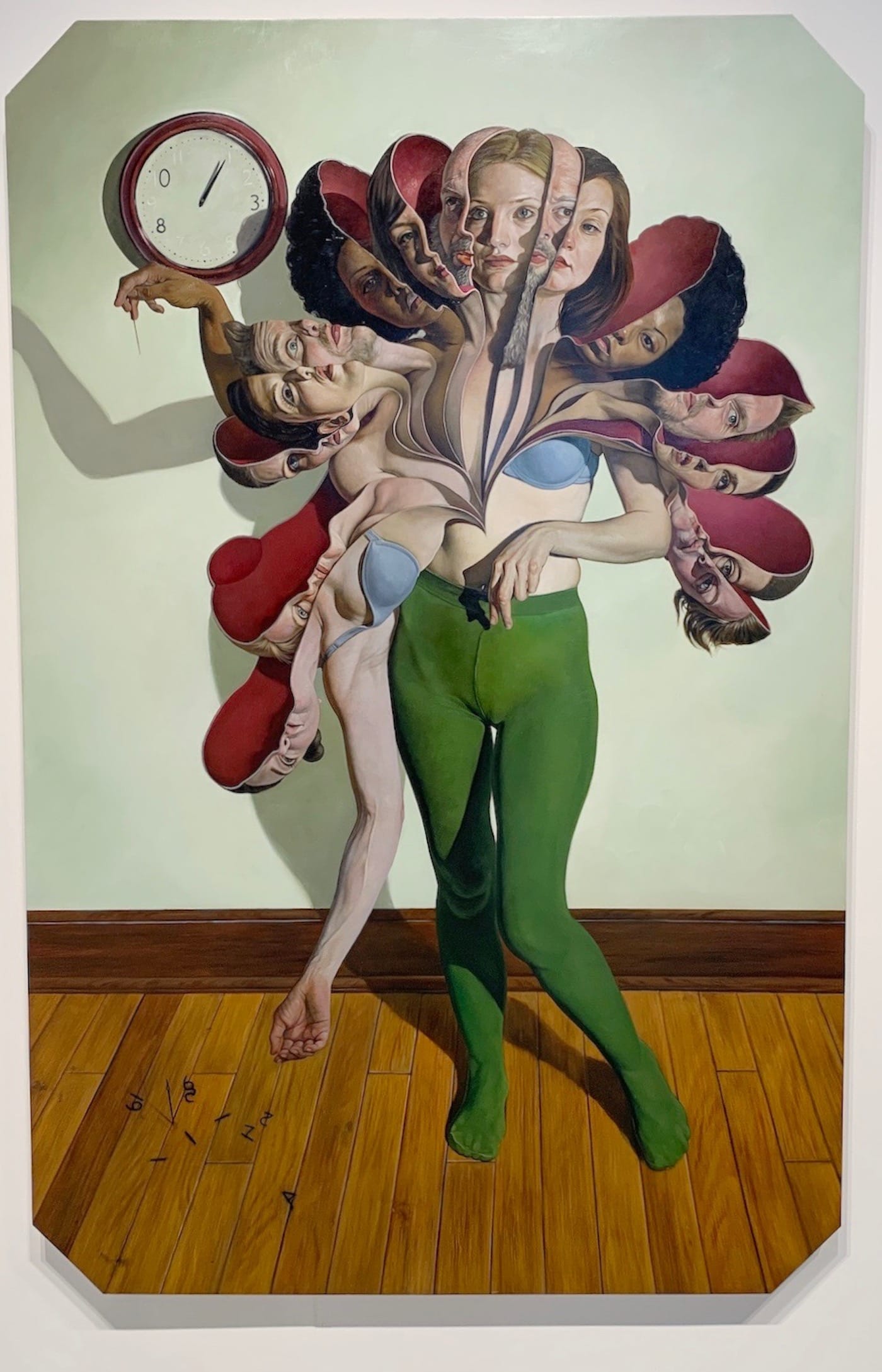 Grander trends within this year’s Armory Show are likely obvious to anyone who’s hoofed around galleries in the past few years. Surrealism is back with a vengeance, alongside figuration. Erik Thor Sandberg (on view at the Connersmith gallery’s booth in Pier 90) works in a conceptual mode and color palette similar to René Magritte, but ups the existential ante — if you can believe it. For example, one of his works, called “Blossom II” (2017) features a subject peeling back layers of their own personhood, reflecting a variety of different personae from different ages, genders, and races. This type of work definitely indulges in the cliché and bathos of the genre — clocks shorn of its numbers, vacant stares mixed with expressions of abject terror — but it still holds one attention better than the many lackluster conceptual-based works on display.