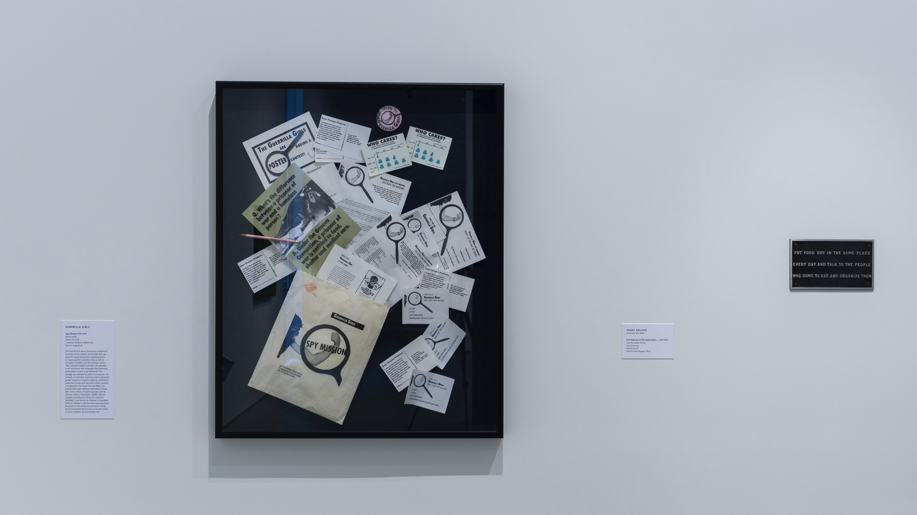 WEST PALM BEACH, Fl. — “Spy Mission Kit” (1998) is a mixed media piece by Guerrilla Girls featuring an envelope, a pencil, postcards, flyers and other objects originally meant for public consumption. Using these, any individual who witnessed gender inequality at museums, galleries, and theatre production houses could mail in their concerns to the anonymous feminist collective and ultimately help illustrate the magnitude of bias against women artists. The irony is these items were collected as mementos to compose a piece from the nineties, yet, the issue they address is as relevant as ever.