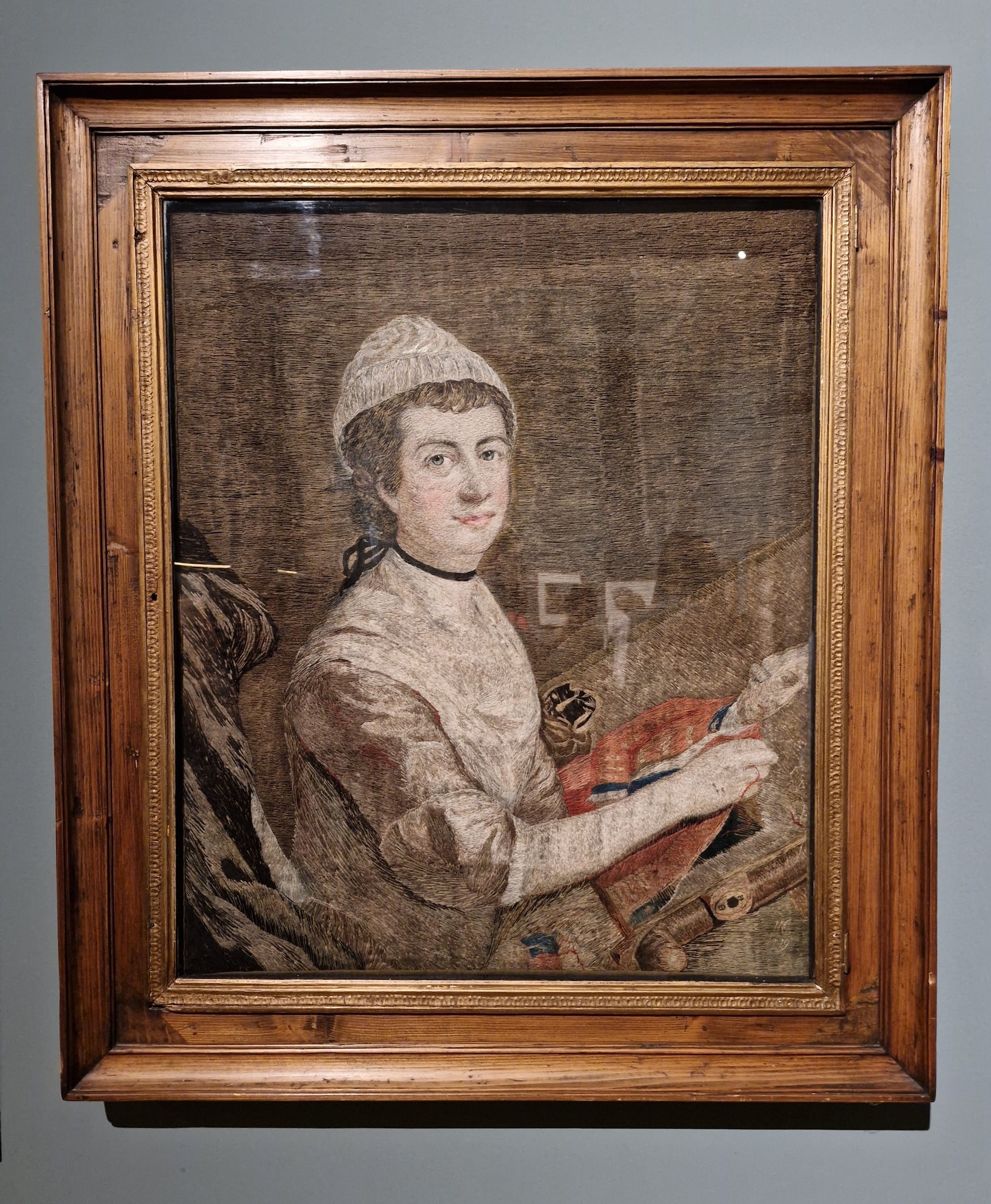 Likewise, art history favors the mighty oil medium; in 1770 the Royal Academy banned “needle-work, artificial flowers, cut Paper, Shell-work, or any such baubles.” Women could practice these disciplines in domestic setting with relatively little equipment, and some made these into reasonably profitable enterprises; Mary Knowles’s embroidery portrait of herself at her needlework was commissioned by Queen Charlotte in 1771.