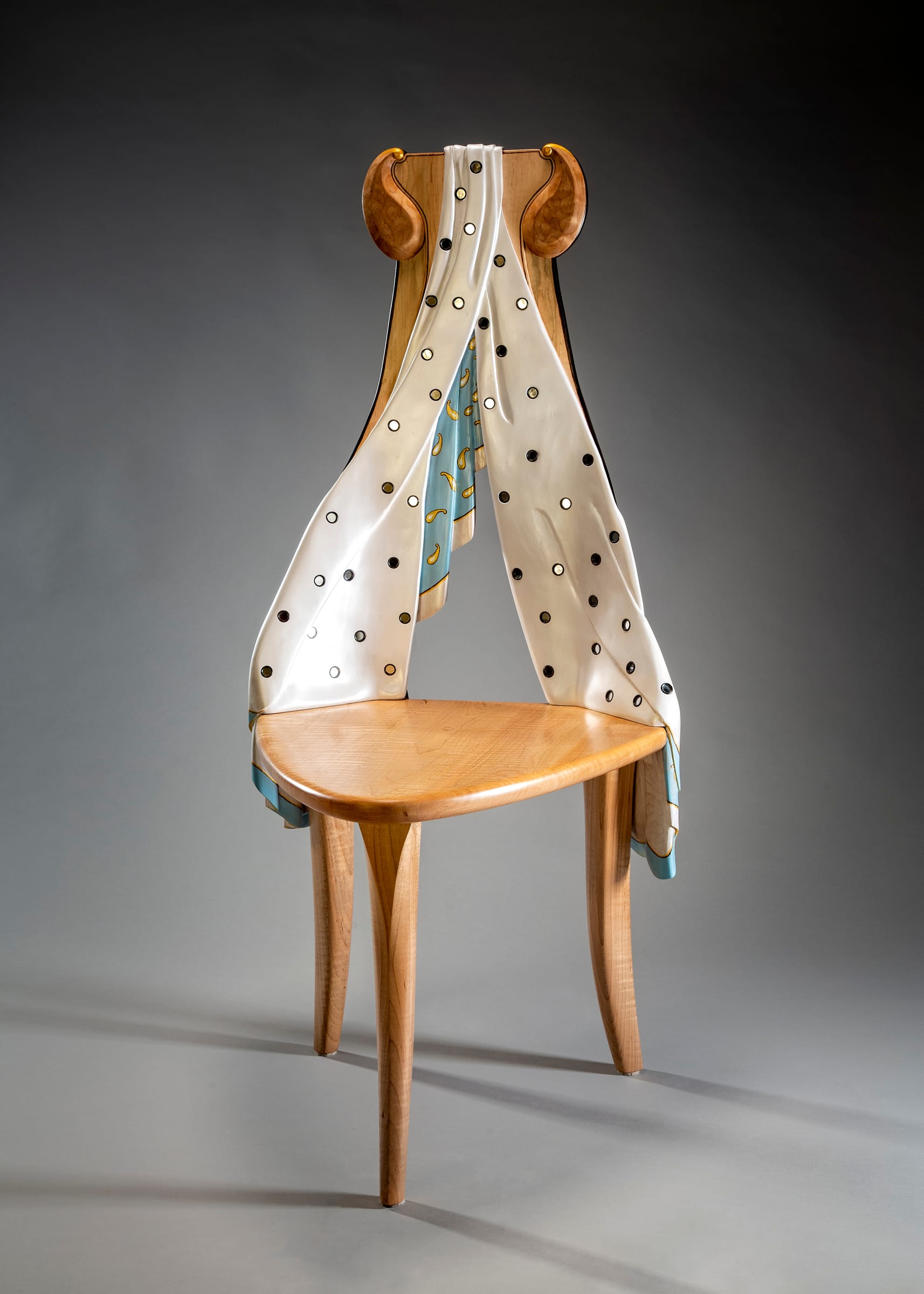 This seems especially noteworthy considering that Salem College is the nation’s oldest female educational establishment that is still functioning as a women’s college, and according to Juliette-Duex, the design students interacting with the chairs in the library are overwhelmingly female. Accordingly, Juliette-Duex curated Seating Assignment: Women in Contemporary Chairmaking and Craft Education. The forthcoming exhibition, presented in partnership with the SIDE Chair Gallery and Sawtooth’s Eleanor and Egbert Davis Gallery, seeks to give women chairmakers a seat at the table.