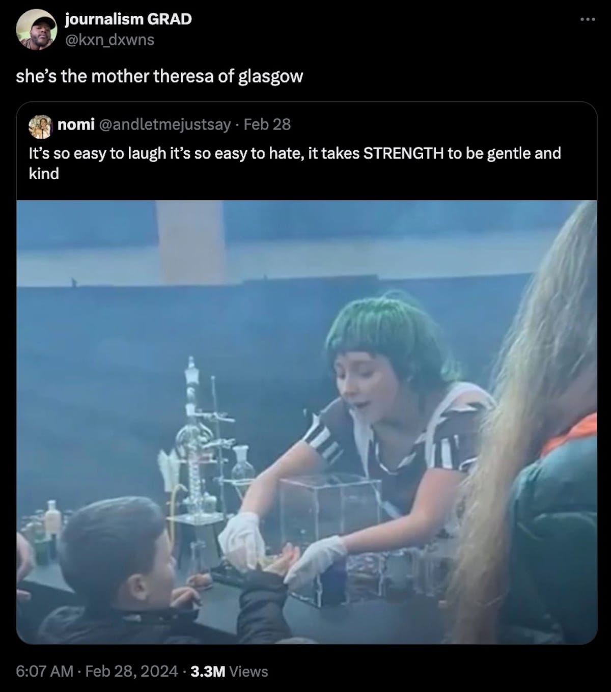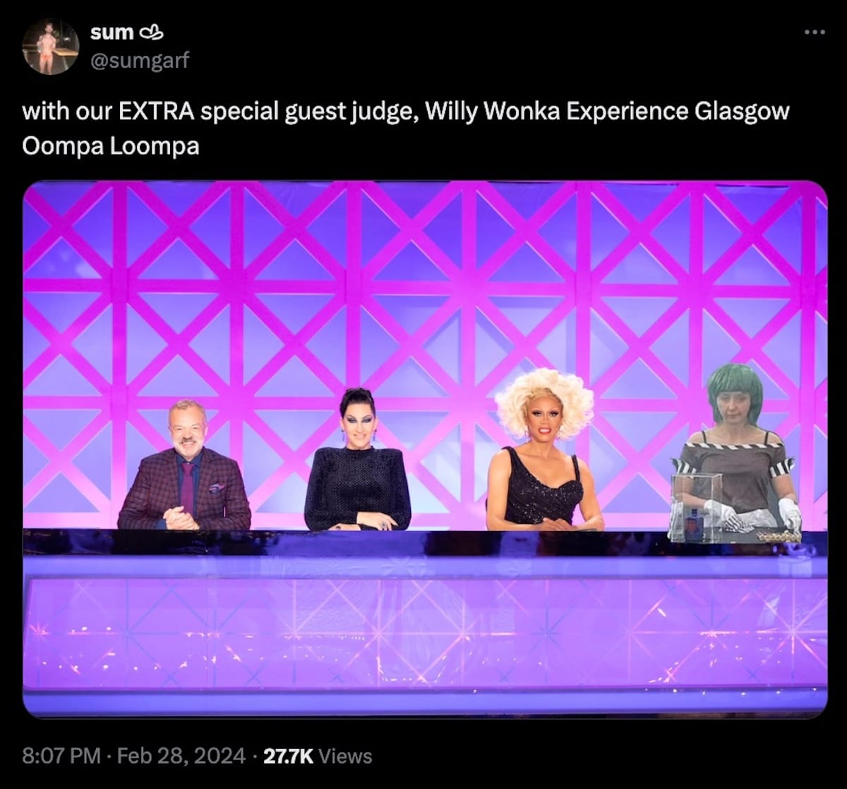 Arguably the most iconic part of the whole event was the birth of a contemporary Helen of Troy — Kirsty of Glasgow, the face that launched a thousand memes. Kirsty has since come out with her side of the story in a Vulture interview and on her new TikTok account and is taking the internet notoriety in stride, which is great for us, as her facial expression in a Poundland Oompa Loompa costume has become the main image of the whole event and incredible fodder for internet spinoffs.