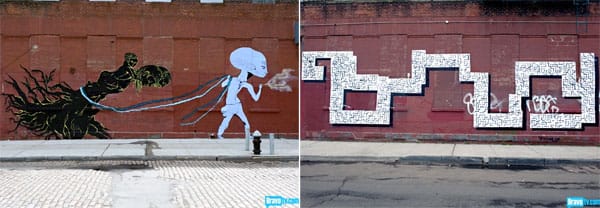 Team Touching Emotional Connection’s piece is predictably touching and emotional. Team Tiger Penis’s piece is trying way too hard to be provocative and make hot girls say “penis.” But that said, it’s super fun, and their sticker idea is adorable. It does feel contemporary and raucous, and like something one might actually see on the street in DUMBO.