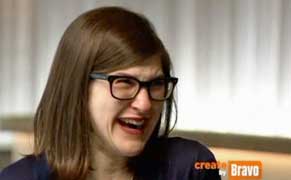 The gallery show rolls around, and one of the first people shown there is none other than Johnny Iuzzini, tattooed pastry chef of Top Chef Just Desserts! Way to go with the cross promotion, Andy Cohen. The intelligent Jeanne Greenberg Rohatyn also returns as a guest judge.
