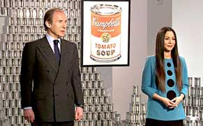 This week’s Work of Art begins with the arrival of our intrepid artistes at the Phillips de Prury auction house. They follow a line of tin cans until low and behold! A mountain of tin cans! Next to one Andy Warol’s soup can paintings! Guess what kids, it’s time for a Pop art challenge!