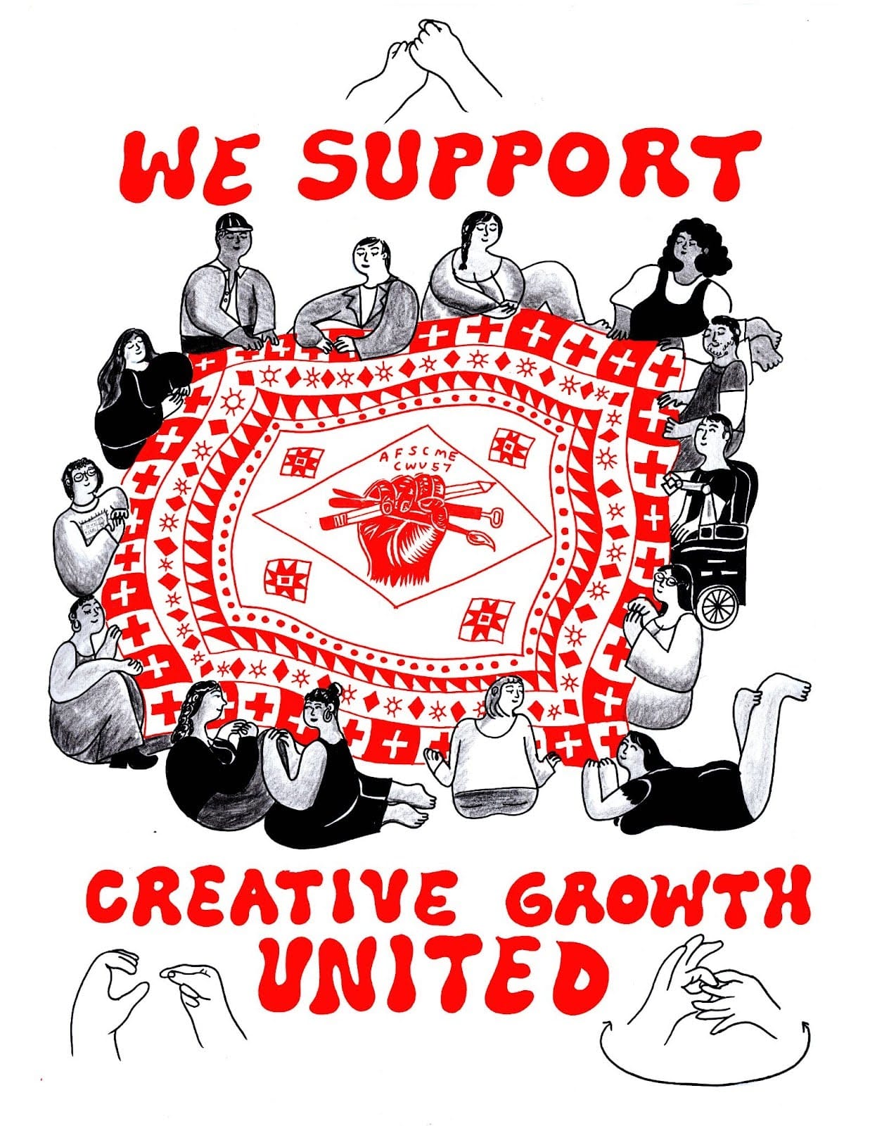 Creative Growth United plans to bargain for standardized pay along with standardized hours, as workers have faced unexpected hour cuts. The union is also asking for staff and artist participation in Creative Growth’s board, so those involved in the center’s day-to-day operations can have more influence on the nonprofit’s decision-making.