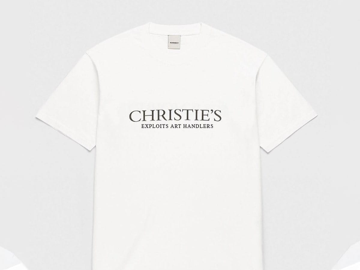 On Instagram, an art handler who goes by the social media handle @sugarbombing shared that she had worked for 10 years in the industry, and posted a parody of the t-shirt that reads “Christie's Exploits Art Handlers."