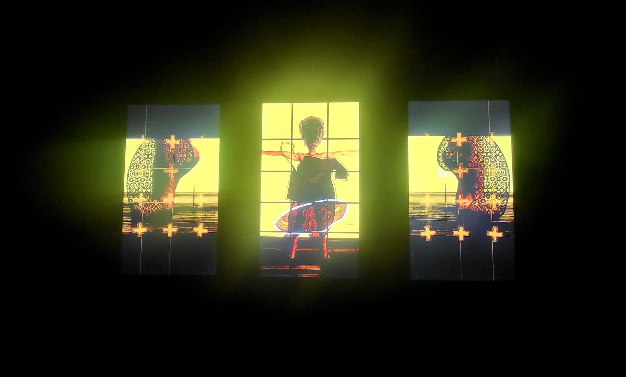 But it’s difficult to single out the “best” work in a show foregrounding notions of collectivism and decoloniality. Like the structures that undergird colonial capitalist power worldwide, the artworks were intertwined; you just had to take it all in and connect the dots. Even if a term such as “decoloniality” may now sound like an empty signifier in the art world, Okkoota ಒಕ್ಕೂಟ refused to conceptualize the show as an academic object lesson. Neither did it co-opt the politics of decoloniality to aestheticize them. Any skepticism was dispelled upon entry, when visitors realized that the entirety of Arts House, which is known for performance and takes its residence in the austere North Melbourne Town Hall, had been adapted to suit the show, instead of the other way round.