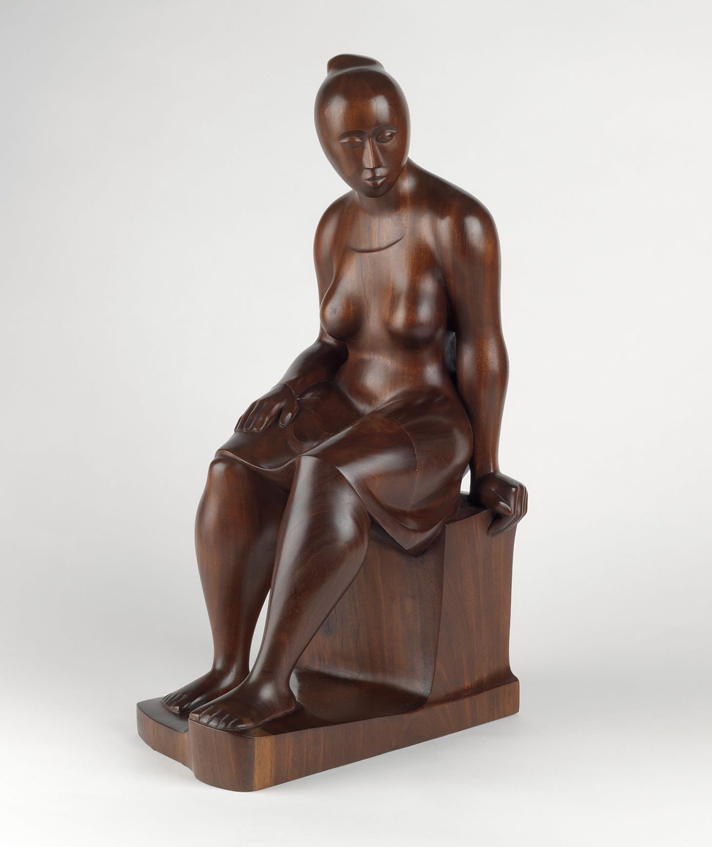 Elizabeth Catlett, “Seated Woman” (1962), carved mahogany (image courtesy Swann Galleries)