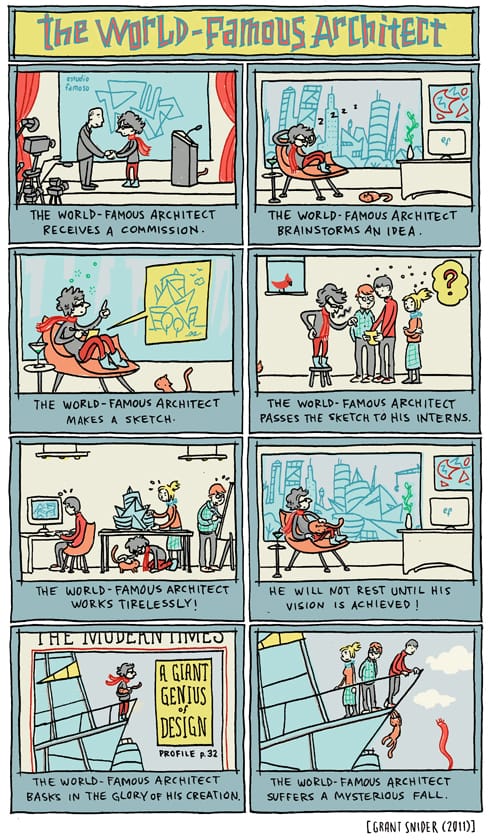 From the desk of the always brilliant Grant Snider is this clever take on the starchitect.