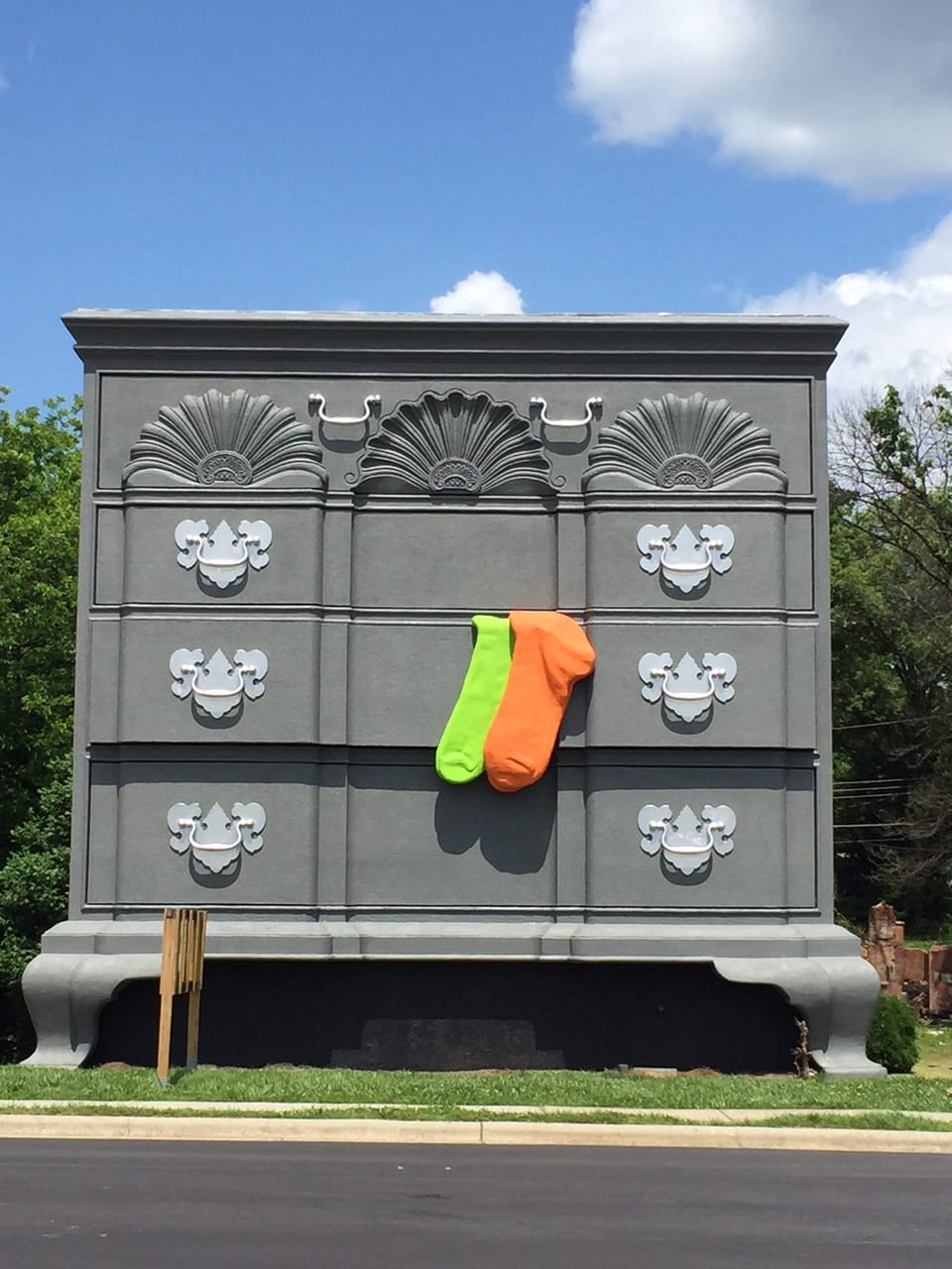 If you were intrigued by the prospect of owning Newark, Ohio’s World’s Biggest Picnic Basket last year, but didn’t have the $5 million asking price, you’re in luck! The “World’s Largest Chest of Drawers” in High Point, North Carolina is up for sale, together with two adjacent lots, for a mere $235,000.