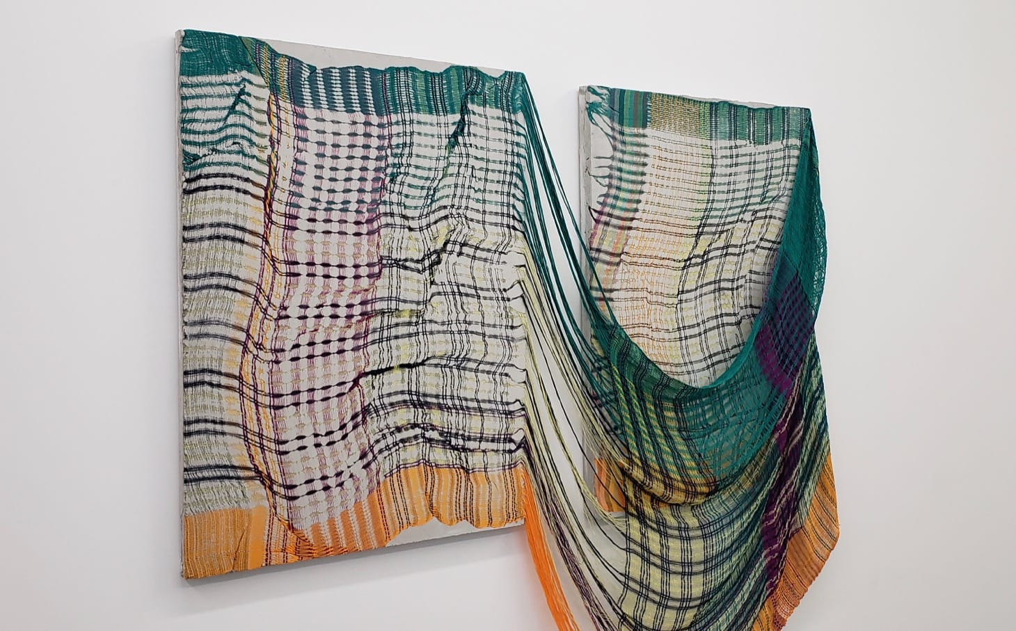 Woven Walls, a tightly curated summer show at Morgan Lehman Gallery, explores a language between the threads of different textiles.