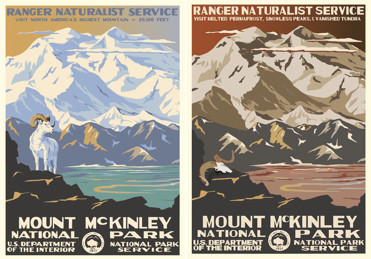 Artist Hannah Rothstein created a series of images in the style of vintage posters for US National Parks that imagines what they will look like if we don't act against climate change.