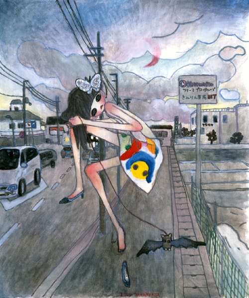 The fact that several other artists are represented under Murakami’s company doesn’t make them subordinate, either. Chiho Aoshima has been particularly visible with her massive, printed murals that have decked out the London subways among other places. Chinatsu Ban makes some awesome cartoon-y elephants, while Aya Takano‘s moody drawings relate to the anime aesthetic in a different, more handmade way. Yoshitomo Nara is somewhat off to the side of Superflat as a predecessor, his very handmade lo-fi paintings and drawings poking at pop culture, but without the cynicism that often comes with Superflat.