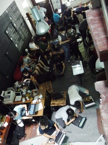 “In 2009, we held events for free,” Aaajiao told me, but those who attended weren’t always focused or engaged on the topic. Despite the fact that paid events often struggle in China, they soon started charging and focusing on quality. Attendance grew, and most events are standing room only. For their latest workshop on mapping, attendees — some coming from as far away as Beijing or Shenzhen — sat on the floor and even in each other’s laps to participate.