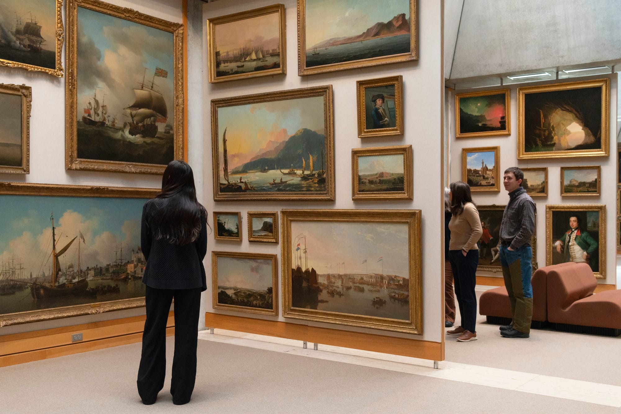 The core of the museum’s collection spans 1750 to 1850, a period marked by the Industrial Revolution. Viewers can trace the rapid shifts in society that developed as people migrated from bucolic landscapes to the grittier streets of 19th-century London. Several paintings illustrate the hardships of life in far-flung colonies as well as the class tensions inherent in portraits of servants at country estates. A jarring right turn at the end of the exhibition propels guests to a handful of abstract works from the 20th century, when the peak of Great Britain’s power began to wane.