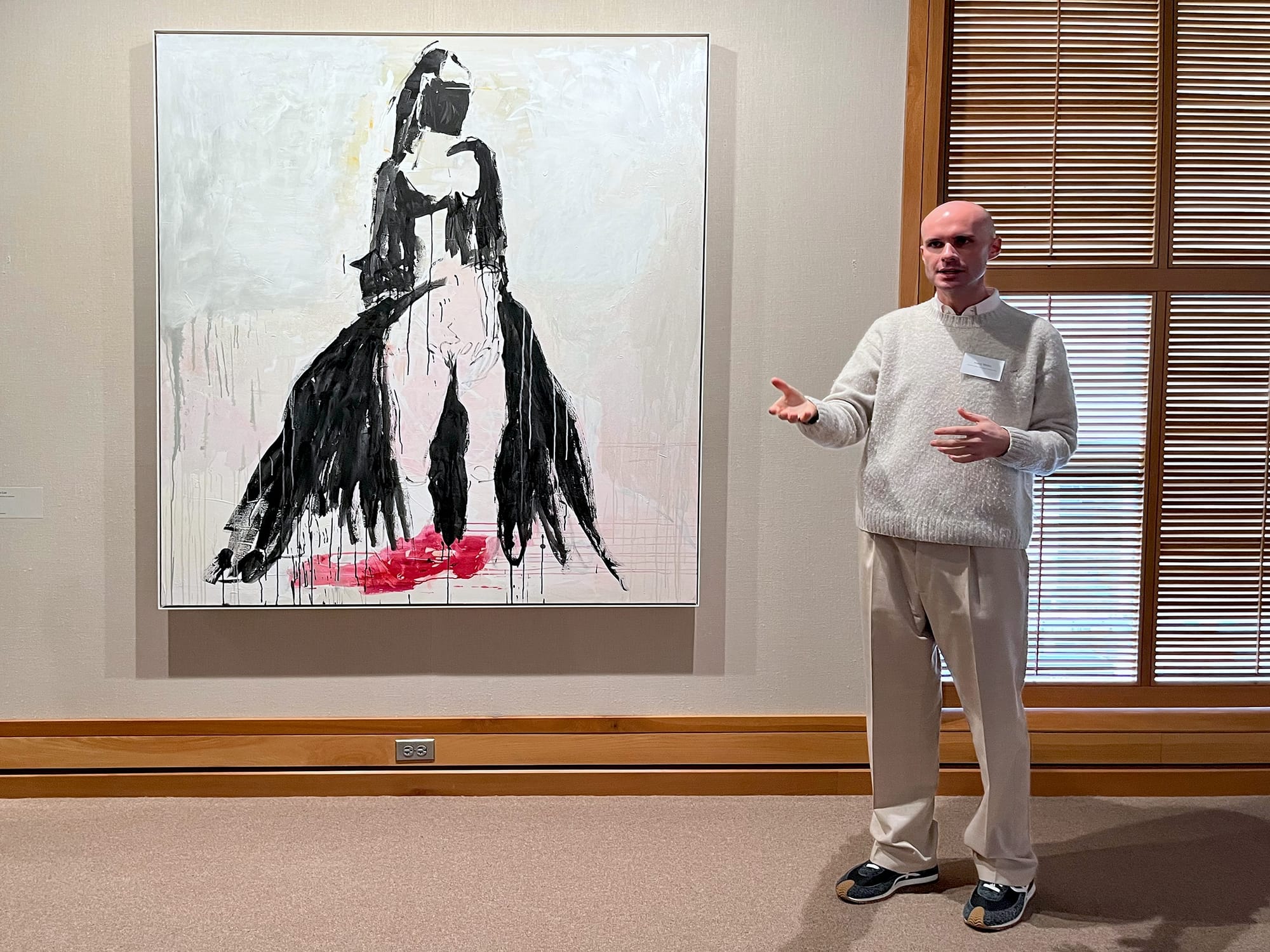 “She was screaming at it and hit it so hard that she punctured the canvas,” Weller said while playing a video on his phone of Emin attacking the painting. “That rage comes through her work.”