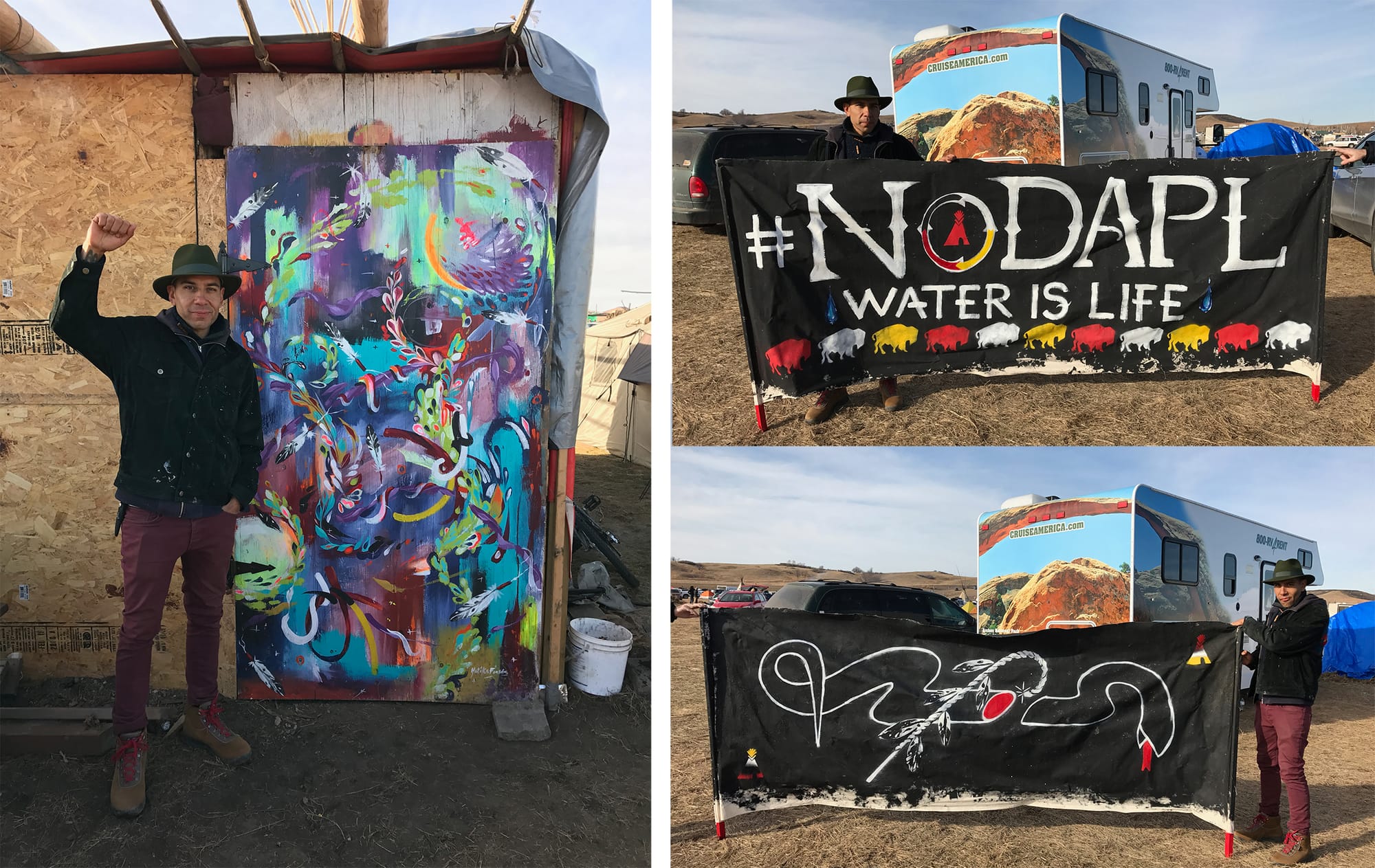 When I asked Fields at Standing Rock what he thought were some of the most powerful symbols and images to emerge around him, he explained: “I think it’s about force, it’s about breaking, that’s what I think it is. It’s about making the United States look at themselves and see what’s going on … it’s about standing up, breaking, separating, and unifying.”