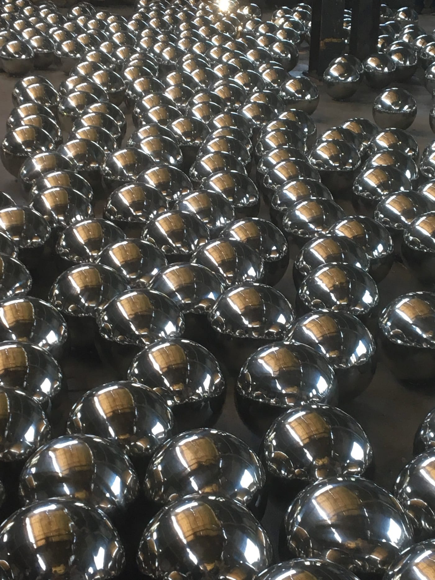 This new incarnation of Narcissus Garden has decidedly different implications than the original, and not just because plastic spheres have been replaced by stainless steel ones. Kusama’s installation connects with a broad reach of Rockaways history, as well as with the impact of climate change on the area. Her spheres seem a bit like machine parts, and maybe also, more ominously, like armaments, pointing to Fort Tilden’s military past. The sheer wow factor of this installation — its status as a thrilling beachside attraction — connects with the resort and entertainment culture that flourished in the Rockaways for decades, including the once renowned amusement park Rockaways’ Playland, which opened in 1901 and drew gazillions of visitors before it closed in 1985 and was torn down to be replaced by condominiums.