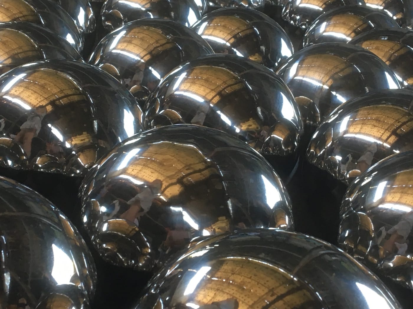 Kusama’s installation is a revamped version of a guerrilla action she undertook in 1966, likewise titled Narcissus Garden. Without invitation or permission, she installed silver, highly reflective plastic spheres outside the Italian Pavilion at the Venice Biennale and stood among them throughout the exhibition’s opening period, barefoot and dressed in a gold kimono, while offering individual spheres for sale to viewers at the price of 1200 lira (about $2).