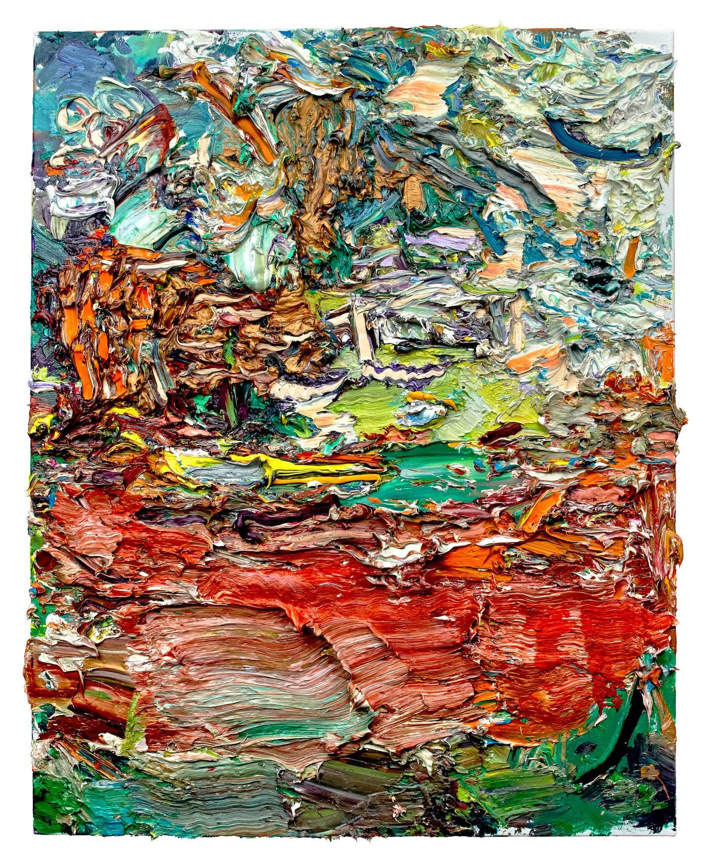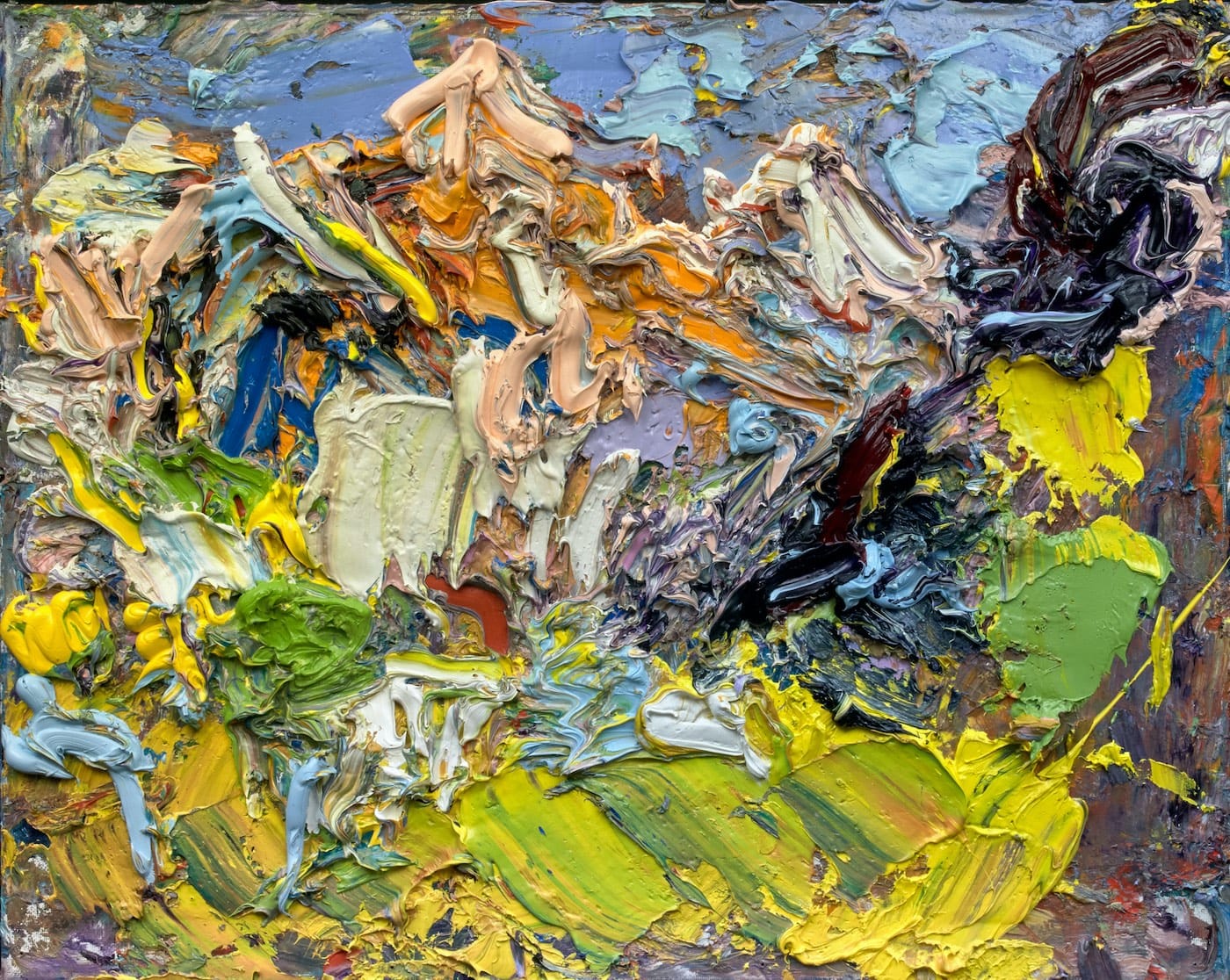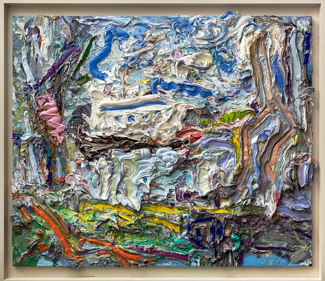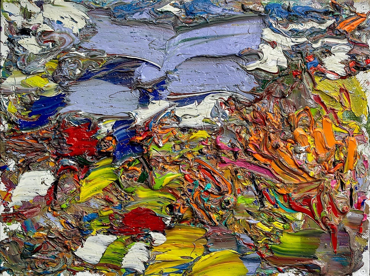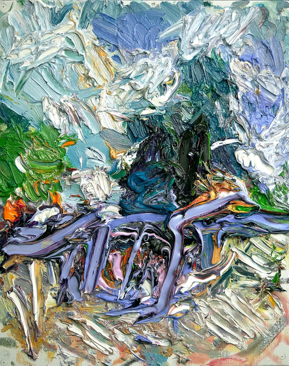 Absorbing lessons from Vincent van Gogh, Li uses the direction of the brushstrokes to convey motion, the continuously changing landscape, and the world in constant transformation. Once we know Li’s history, it is hard not to think that the joy we see in the work is rooted in her youthful dreams of painting in intense color while luxuriating in oil paint’s materiality.