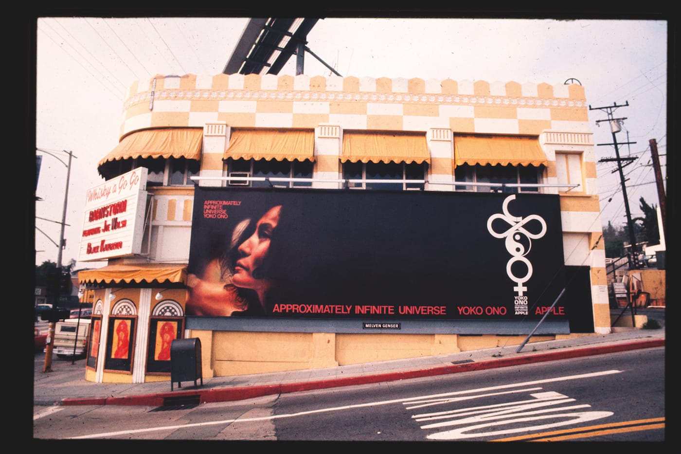 Billboard for the “Approximately Infinite Universe” album at the Whisky a Go Go night club, Los Angeles, 1973 (photo courtesy of Yoko Ono)