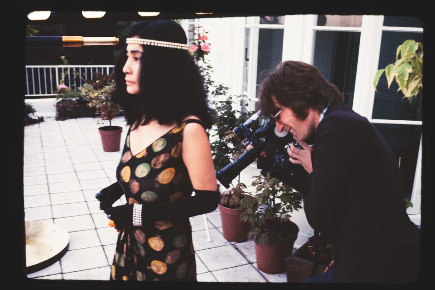 Yoko Ono and John Lennon in a film still from “Imagine,” 1972 (photo by Peter Fordham, ©Yoko Ono)
